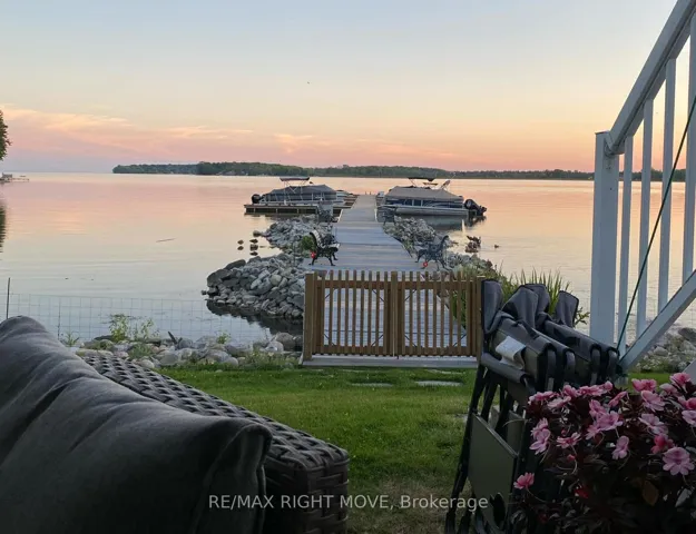 Spectacular south-facing Lake Simcoe views on the Trent Severn Waterway, private dock & effortless waterfront living in the sought-after Invermara Bay community. Unobstructed lake views from principal rooms and the added benefit of this unit enjoying its own private dock. This may be The Right Move for those looking to embrace a year-round waterfront lifestyle or exceptional vacation retreat. This unit shows 10+. Upgraded kitchen w/ stainless appliances: fridge w/ water & ice dispenser, built-in over-range microwave, dishwasher, & breakfast bar w/lake views & w/additional storage. Walk-in pantry adds exceptional functionality w/space for a freezer, coffee bar, & additional storage. Great room combines the dining & living areas & is highlighted by impressive 9.5-ft ceilings enhancing the sense of space. Striking focal point is a floor-to-ceiling tiled gas fireplace w/ beam mantle. Expansive 8-ft high by 12-ft-wide patio door system w/side windows leading to the patio maximizes panoramic lake views . Primary suite, perfectly positioned on the waterside w/ a large picture window captures breathtaking views from the patio door to the private patio. Ensuite includes a stand-alone tub with lake views & separate water closet for added privacy. Second bedroom w/ double french doors provides flex space for guests, a den/office. Other features: Crown moulding, California shutters, carpet-free flooring, F/Air natural gas heating, owned gas water heater, wifi & cable incl. in maintenance. Full crawl space offers valuable additional storage. Uncommon benefits, this unit includes both a garage, an outdoor parking space as well as a private dock. Not all units have a dock or two parking spaces. The main dock includes a ladder for swimming. Residents enjoy shared amenities including a pool & fitness room, sauna, washroom & meeting room. Ideally positioned close to the pool yet not directly in front, this unit offers convenient access to the docks while maintaining privacy.