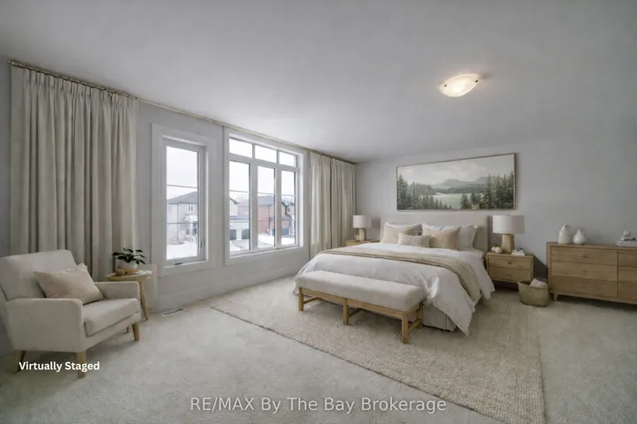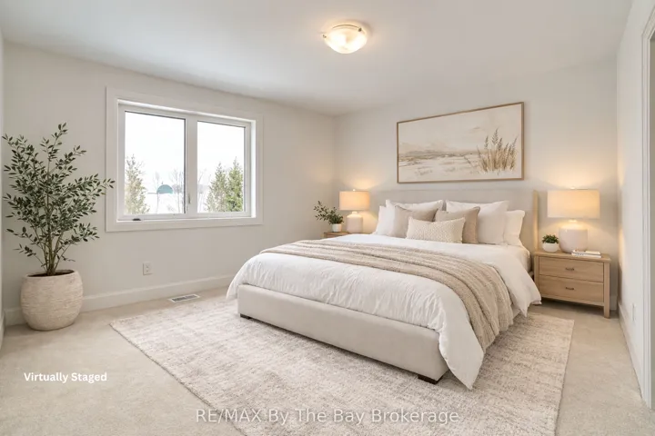 Backing onto trails on a premium lot with no rear neighbours, this newly built 4-bedroom, 4-bathroom Pine Model (Elevation A) by Baycliffe Communities offers over 2,500 sq ft of thoughtfully designed living space in a quiet residential pocket within the sought-after Wasaga Sands community. Featuring a timeless all-brick and stone exterior, this move-in ready home provides exceptional value in a highly desirable setting surrounded by nature. Inside, the bright open-concept main floor features 9-foot ceilings, upgraded hardwood flooring, pot lights, and a beautifully finished staircase with wrought iron spindles, creating a warm and inviting atmosphere. The kitchen is well appointed with quartz countertops, a large centre island, upgraded cabinetry, and modern finishes, and flows seamlessly into the living and dining areas, making it ideal for both everyday living and entertaining. Additional upgrades throughout the home include a black window package, upgraded black door hardware, and an upgraded trim package. Upstairs, the second level offers four spacious bedrooms and three full bathrooms. Two bedrooms share a Jack & Jill bathroom with double vanity, while the fourth bedroom enjoys access to its own private bathroom. The primary suite features a walk-in closet and a beautifully appointed 5-piece ensuite with soaker tub, glass shower, and double vanity.The unfinished basement with bathroom rough-in provides excellent potential to create additional living space, a recreation room, home gym, or additional storage. Conveniently located just minutes from schools, shopping, trails, and the beach, with Collingwood and Blue Mountain just a short drive away for year-round recreation. Be the first to live in this move-in ready home.