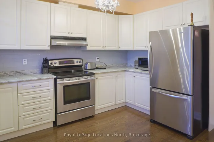 Spacious 3-bedroom Townhome with high ceilings and double garage ( 24’10” x 17′ 2″) has room for 2 cars plus tools and storage. Parking for 4 cars plus visitor parking nearby. Total of 1902 st ft finished. New kitchen includes granite counter tops. Walk-out to balcony from kitchen, with views of ever-changing sunsets. Living room has a gas fireplace and an outdoor balcony. Primary bedroom has en-suite and walk in closet. The ground level bedroom can be converted to a home office. Hardwood floors on 2nd level. Smoke and pet-free home. Gas hook up for BBQ . Stonebridge by the Bay is an active and caring community with a recreational lifestyle and plenty of social activities. Common Elements include shared use of inground pool, Zen Garden and waterfront beach house. Snow clearing on a private road. Good walk score to nearby services and just a 5 minute walk to Walmart. Easy access to beaches and golf courses. Short drive to Collingwood, Blue Mountain and Barrie.