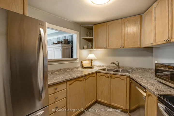 Private, Enjoyable Suite With Interesting Sight Lines, Garage Parking, Plus A Locker For Your Additional Storage Needs! THIS IS A LARGE ONE BEDROOM, ALSO SUITABLE FOR A COUPLE. Here you have full advantage of the quieter end of this well-maintained building, away from the hustle and bustle of the foyers, yet very close to your garage entrance and steps from an extra parking spot outside for guests. Your patio door has keyed-entry for seamless access to the outdoors, great for pets and your active lifestyle so you can come and go directly from your unit instead of relying on an elevator. And your covered patio is a sheltered place with plenty of surrounding greenery and a tranquil feel. You also have the use of a roof-top deck for larger gatherings and barbeques. A neutral decor allows you to personalize the space to suit you, and an efficient floor plan has great views to nature outside your windows. Be situated in White Sands across from Georgian Bay in a desirable Penetanguishene neighbourhood, and a hop-skip-and-jump from our vibrant downtown shops, restaurants, cultural centres… Walk, ride or ski along our beautiful waterfront, for outdoor fun all year around. Close to marinas, curling club, hospital, golf courses and all the other amenities our wonderful shoreline community has to offer you. Minutes to Midland, commuting distance to Barrie, Wasaga Beach, Orillia, and 90 minutes to the Toronto area. Whether this is your first home or a downsize, here is a rare opportunity for you to enjoy care-free condo living at its best! Get it before it’s gone! Note: Potential to rent garage spot to non-garage owner/ historically covers garage portion of condo fee.