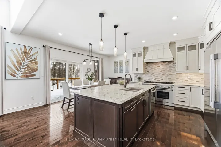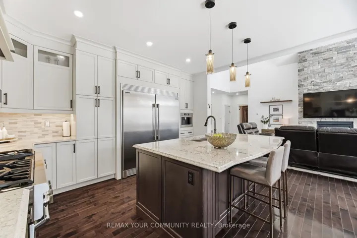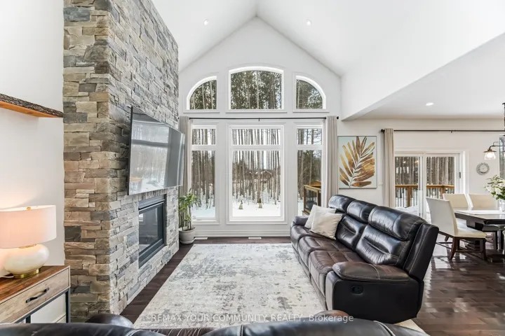 Experience Refined Living In This Exceptional Bungaloft Set On A Secluded 1-Acre Wooded Lot In The Prestigious Pineview Estates Community. A Residence Where Timeless Architecture, Privacy, And Upscale Finishes Create An Unforgettable First Impression. Surrounded By Mature Forest And Beautifully Landscaped Grounds, This Striking Home Showcases An Elegant Brick And Stone Façade, Dramatic Rooflines, A Welcoming Covered Porch, And A Heated 3-Car Attached Garage. Inside, More Than 2,300 Sq. Ft. Of Thoughtfully Designed Living Space Unfolds With 9-foot Ceilings, Neutral Designer Tones, And A Spectacular Great Room Featuring 12-foot Ceilings, A Floor-to-ceiling Stone Fireplace, And Expansive Windows That Frame Tranquil Views Of The Surrounding Trees. The Custom Chef’s Kitchen Is Highlighted By Quartz Countertops, A Contrasting Centre Island With Breakfast Bar, Premium Stainless Steel Appliances, A Gas Range With Statement Hood, Built-in Bosch Coffee System, And A Side-by-side Refrigerator And Freezer. The Adjoining Dining Area Opens Directly Onto The Deck, Creating An Effortless Indoor-outdoor Flow Ideal For Entertaining. Step Outside To An Elevated Deck Overlooking The Serene Backyard, With Stairs Leading To A Beautifully Crafted Stone Patio, Accented By Armour Stone Landscaping And Manicured Garden Beds-an Idyllic Setting For Outdoor Gatherings. The Home Offers Three Spacious Bedrooms, Including A Luxurious Primary Retreat Complete With A Walk-in Closet And An Elegant 6-piece Ensuite. A Main-floor Laundry Room With Sink Provides Convenient Access To The Garage, While The Upper Loft Offers Versatile Space Perfect For A Media Room, Home Office, Or Family Lounge. An Unfinished Basement With High Ceilings, Lookout Windows, And A Separate Entrance Presents Outstanding Potential For Future Living Space Or A Multi-generational Suite. Thoughtful Upgrades Such As Central Vacuum, ERV/HRV System, Air Exchanger, And Automatic Garage Door Remotes Enhance Comfort And Efficiency