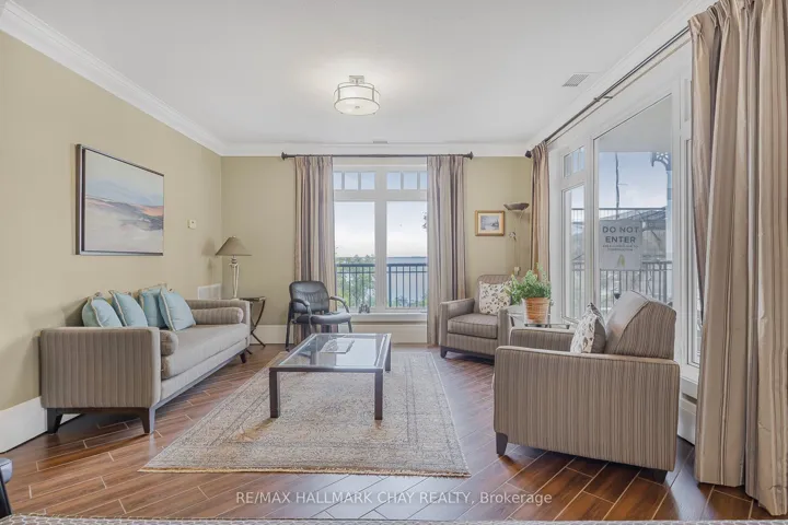 Barrie Condo Corner presents – elegant waterfront living nestled on the serene shores of Lake Couchiching. This 1 bedroom, 1 bathroom gem boasts granite countertops, gleaming hardwood floors, tall baseboards, exquisite moulding, and nine-foot ceilings. Revel in the abundant natural light, which enhances a bright and spacious ambiance.The open concept layout features a gorgeous living area with a cozy gas fireplace, perfect for relaxing and unwinding after a long day. Step out onto your quaint balcony overlooking lush greenery and the Millennium Trail, or entertain atop the rooftop terrace with breathtaking panoramic water views.The generously sized bedroom includes an oversized closet and a separate walkout to a private patio, adding an extra touch of comfort and convenience. Included in the unit is a large laundry room with additional storage, making everyday living easier. A rare boat slip is also available for purchase for an additional $25,000; only 25 units in the building offer this feature. It’s the perfect opportunity to pull your boat right up and enjoy effortless time on the water in this picturesque setting, with access to the Trent-Severn Waterway. Exclusive amenities include a party room, private waterfront access and heated underground parking. For the days you prefer to stay ashore, complimentary kayak storage is also included. The location can’t be beat, just a short walk to Downtown Orillia with its excellent restaurants, grocery stores, shopping and entertainment. Conveniently located right next door is the Royal Canadian Legion.For nature enthusiasts, enjoy direct access to the Millennium Trail for year-round hiking and exploring. Your tranquil retreat awaits.