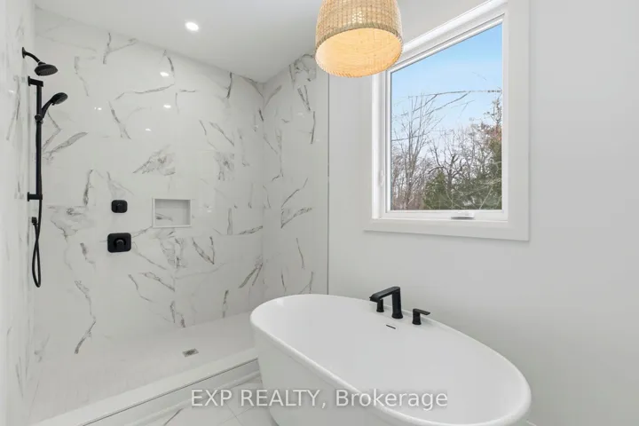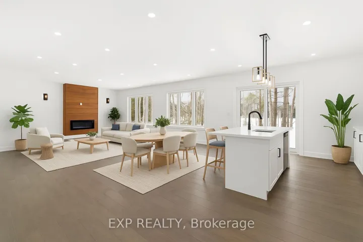 Brand new custom-built luxury bungalow on a quiet, tree-lined crescent in one of Tiny Township’s most desirable areas, just minutes to Georgian Bay, marinas, sandy beaches, parks, and conservation trails. Highlights: 9-ft ceilings on the main level, open-concept design 3/4″ engineered hardwood throughout (7.5″ wide planks), 6″ baseboards, 8-ft interior doors double garage, walk-up unfinished basement with in-law or income potential, TARION warranty included. Designed with exceptional craftsmanship, the main floor offers a bright, airy layout ideal for entertaining. The chef’s kitchen features quartz countertops, modern cabinetry, and seamless flow into the dining and living areas. The living room is anchored by an electric fireplace and striking pine feature wall, creating a warm yet modern focal point. The primary bedroom provides a private retreat with a walk-in closet with window and a spa-inspired ensuite featuring a 5-ft soaker tub, oversized glass walk-in shower, double vanity, and 12×24 tile flooring. Two additional bedrooms offer double windows and generous closets, while the main 4-piece bath continues the upscale finish with quartz and large-format tile.Practical touches include a mudroom with laundry access from the double garage and a welcoming front foyer with double closet. The full-size walk-up basement is ready for your vision-perfect for an in-law suite, secondary suite, or expanded living space. Set on a private, treed lot close to Georgian Bay beaches, marinas, and nature trails, this home delivers modern luxury paired with Tiny Township’s relaxed coastal lifestyle.