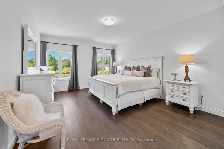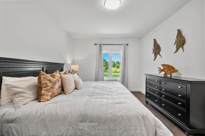 Located in the highly sought-after Wasaga Sands community, this beautifully upgraded Cedar Model by Baycliffe Communities offers 1,948 sq. ft. of thoughtfully designed living space. Just 1 year old and set on a premium 62.99 ft x 160 ft lot, this bungalow blends modern elegance with functional comfort in a serene natural setting surrounded by mature neighbourhoods and scenic trails Key Features:Striking brick and vinyl exterior*Grand double-door entry*3 spacious bedrooms + dedicated office (ideal for remote work)*9′ ceilings and upgraded hardwood flooring throughout*Custom closet organizers*Modern white kitchen with upgraded cabinetry, granite/quartz countertops & large island*Open-concept layout perfect for entertaining*Primary suite with walk-in closet (with organizers) and spa-inspired ensuite featuring quartz vanity & glass shower*Laundry room with built-in cabinetry and sink*Double garage with direct access into the home*Private Backyard backing to open space/parkette*Enjoy peaceful living just 3-4 minutes to Wasaga Beach, and close to amenities, trails, and everything this vibrant lifestyle community has to offer*A perfect opportunity to own a nearly new home in one of Wasaga Beach’s most desirable neighbourhoods*