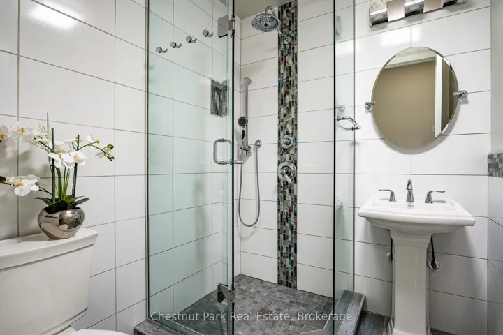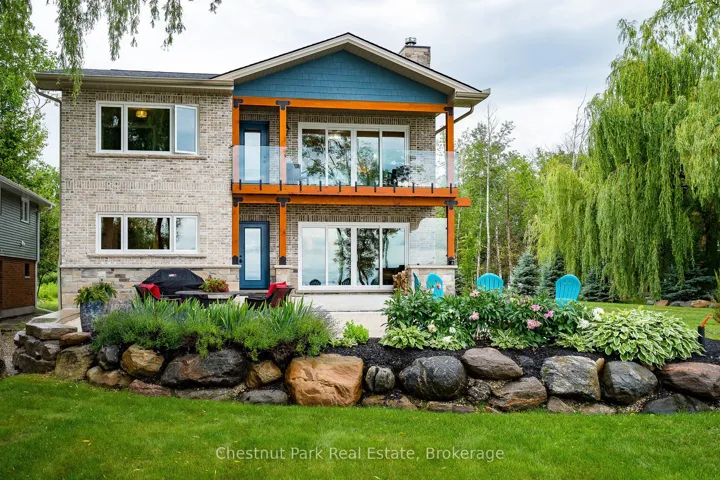 Outstanding waterfront residence in Collingwood! Spectacular panoramic waterfront views from this custom-built home close to the finest amenities this 4 Season area has to offer. Ideal for backyard entertaining with family and friends and dining al fresco while listening to the waves lapping up on shore. Featuring a sandy beach for children to play and crystal-clear waters for kayaking, paddle-boarding and swimming. This 3,039 sq. ft. home has an array of stunning features on the main floor; open floor plan living with a Chef’s Kitchen & oversized island, high efficiency wood burning fireplace in the Living Room and a spacious Dining Room with coffered ceiling. There is a main floor Primary Bedroom with Ensuite, Laundry/Mudroom, 3 Pc Bathroom and inside access to the single car garage. The second floor features 2 spacious Bedrooms, one with a large deck and glass railings overlooking the water, an Office, Family Room and 4 Pc Bathroom. The basement is a 5’10” high crawlspace with plenty of room for storage, high efficiency furnace and hot water on demand. A large detached garage/workshop (29’6″ x 25’6″) sits at the front of the property for the handyman or car enthusiast. There is parking for about 6 cars on the driveway, a concrete pad at the front of the home and beautiful perennial gardens throughout the property. Enjoy the sun and a glass of wine from your rooftop deck accessed from the second floor and morning sunrises from the waterside terrace. The location is easy access and a short drive to downtown Collingwood, Wasaga Beach and all the 4-Season activities like golf, skiing, hiking, biking and boating. A wonderful atmosphere for your home away from home or full-time living in natures playground.