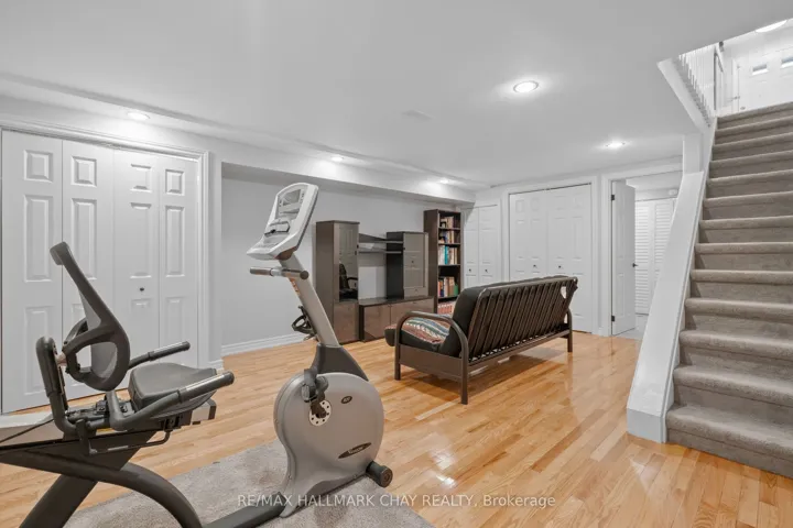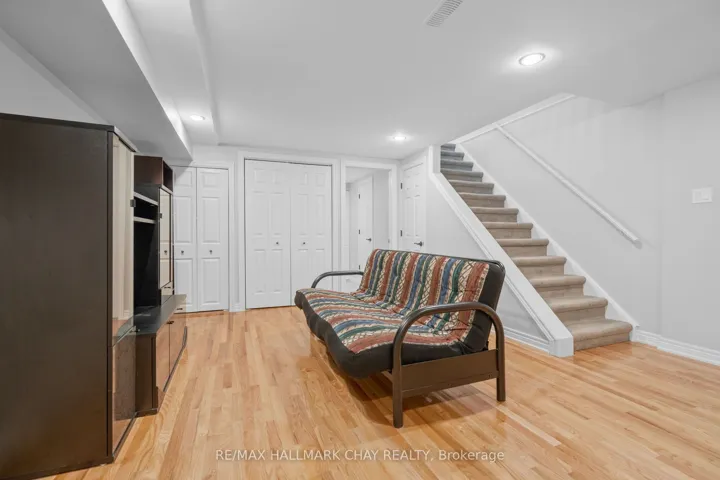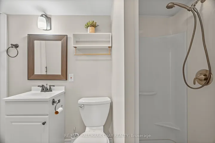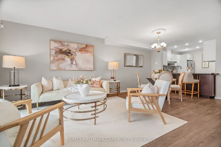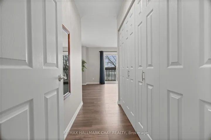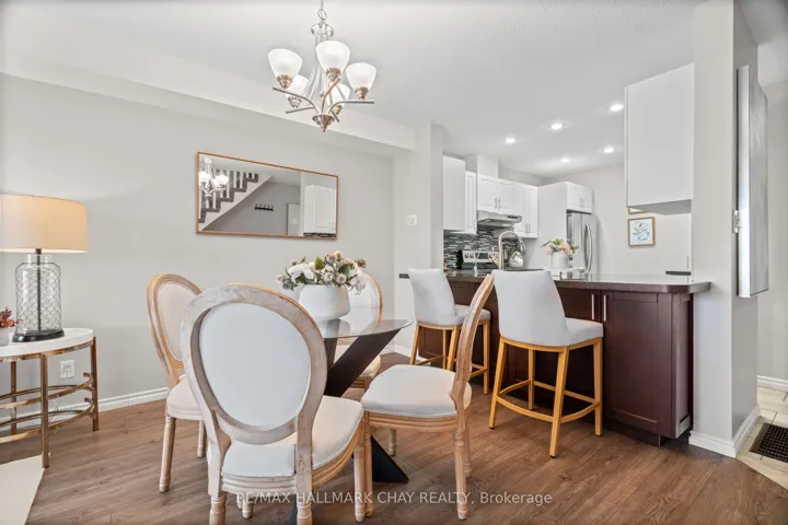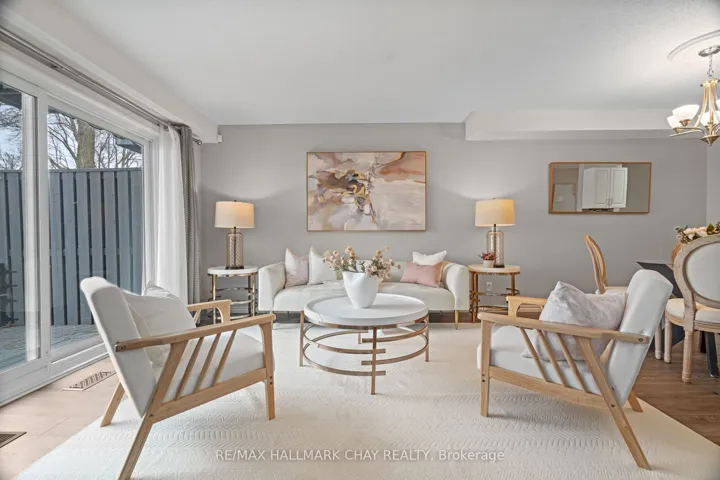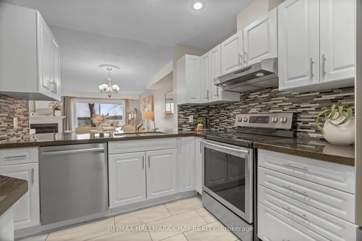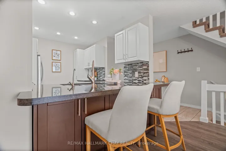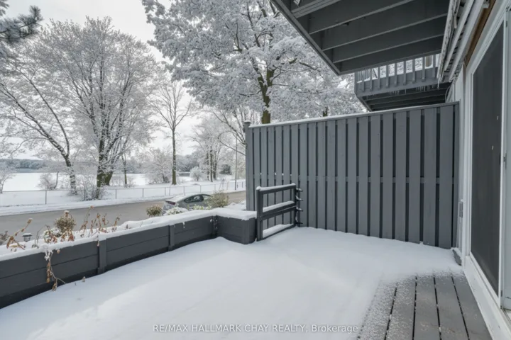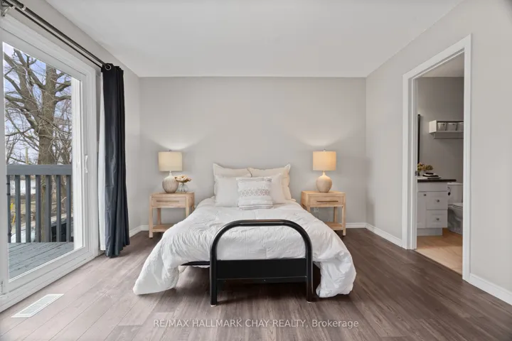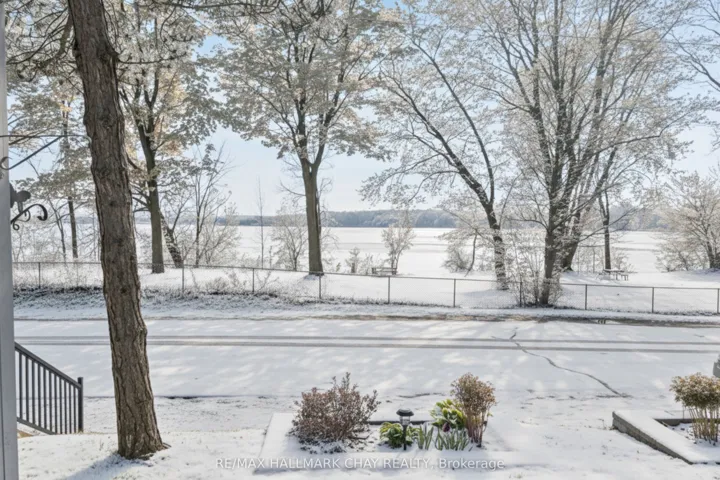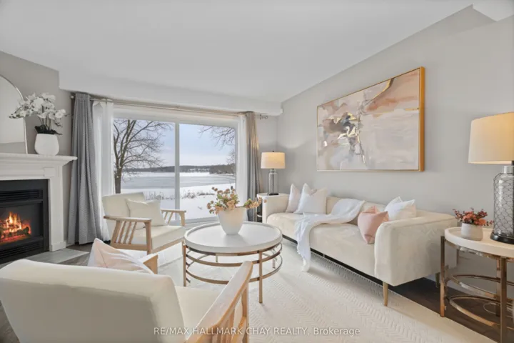 Welcome to this beautifully upgraded end-unit townhouse condo with views of Lake Simcoe-a perfect fit for anyone seeking a peaceful, low-maintenance lifestyle. With stunning western views of Lake Simcoe, over $100,000 in thoughtful renovations, and a low-maintenance lifestyle, this move-in-ready home is as serene as it is sophisticated-offering front-row seats to breathtaking sunsets every evening. Step inside to a spacious foyer with custom closet organizers and a well-designed layout throughout. The chef-inspired kitchen, fully renovated in 2017, features granite countertops, ceramic flooring, stainless steel appliances, and a functional breakfast bar with added storage.The open-concept living and dining area includes newer vinyl flooring, a cozy wood-burning fireplace, and sliding doors to your private deck. Enjoy quiet mornings or unwind under the electric awning while taking in sunset views, surrounded by raised flower beds and a secure gated enclosure.Residents enjoy access to a private dock-perfect for launching a paddleboard or kayak and embracing the waterfront lifestyle. Upstairs, both bedrooms offer new laminate flooring, and both bathrooms have been renovated. The primary suite features an electric fireplace, in-suite laundry, a renovated 2pc ensuite, large closet space, and a private balcony with lake views. The fully finished lower level adds even more versatility, with a spacious rec room finished in hardwood, a third full 3-piece bathroom, and extensive built-in cabinetry for smart storage. The attached garage includes a generous mezzanine loft, ideal for seasonal storage or hobbies.Set within an exclusive 9-unit waterfront complex, this home is directly across from Kitchener Park-25 acres of green space, tennis courts, a dog park, and scenic walking trails. You’re also just minutes from marinas, shopping, downtown Orillia, and Casino Rama.
