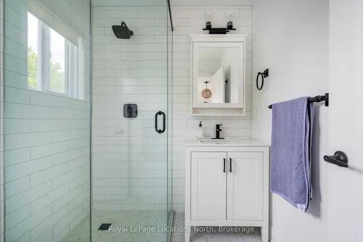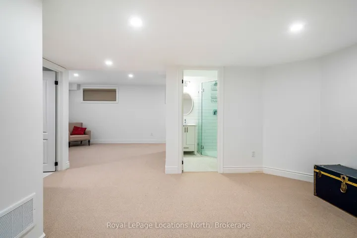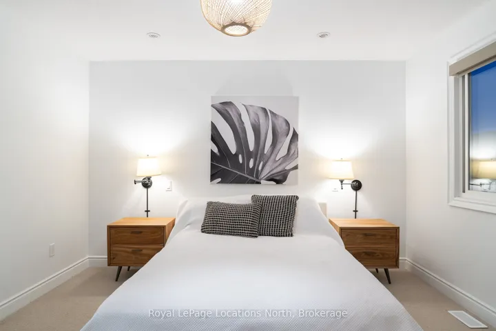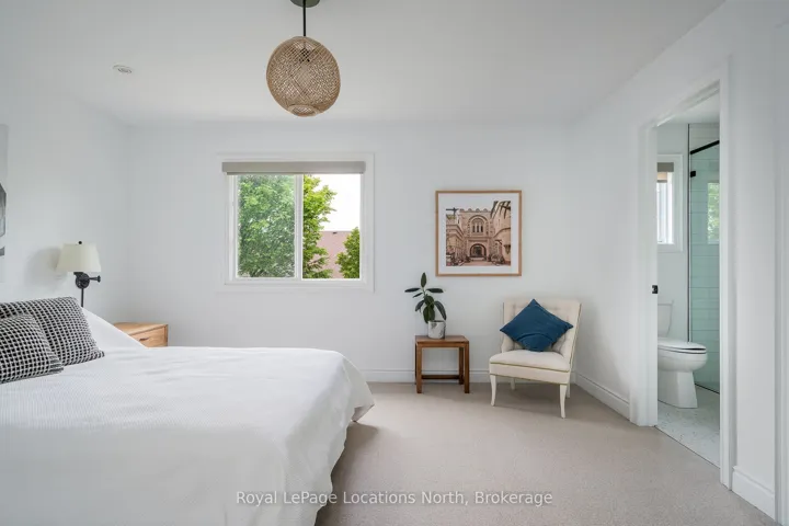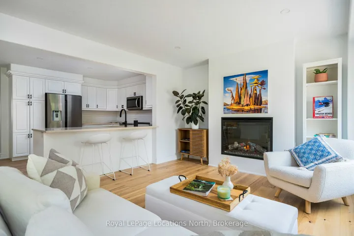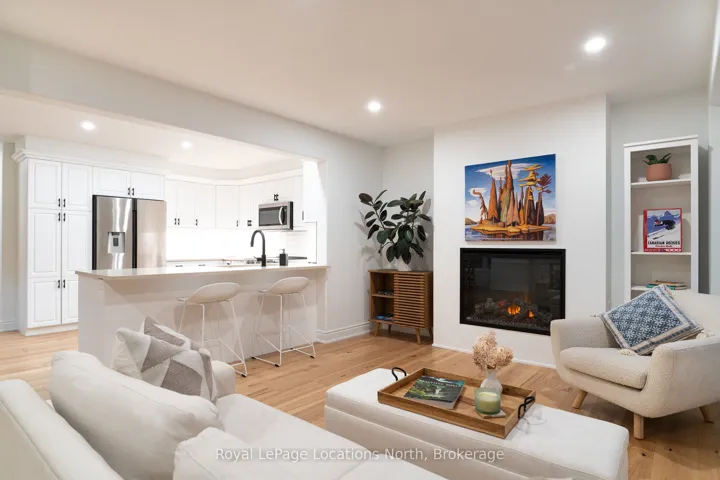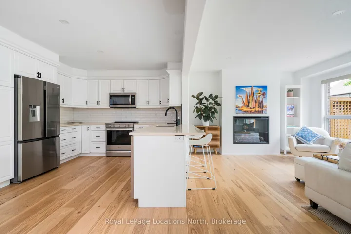 Discover this stunning 2,200 sq ft home nestled in the highly sought-after Creekside neighbourhood. Expertly renovated by Collingwood’s acclaimed Kofoed Built, this elegant 3-bedroom, 3.5-bathroom residence offers an optional fourth bedroom in the finished basement, showcasing premium finishes that create a bright, open, and inviting atmosphere throughout. Step into the spacious, open-concept main floor where modern family living comes to life. The gourmet kitchen is a chefs dream, featuring high-end appliances, sleek white quartz countertops, and a large island perfect for gatherings. Relax in the living room adorned with a contemporary Napoleon fireplace, pristine white oak hardwood floors, recessed lighting, and an airy layout that seamlessly connects every space. Host unforgettable dinners in the dining area, bathed in natural light from a charming bay window. Sliding doors lead to a private backyard oasis with a newly built two-tier deck, and mature trees. Enjoy breathtaking west-facing sunset views from the serene back deck an entertainers paradise. Upstairs, the primary suite offers a tranquil retreat complete with a stylish ensuite and a spacious walk-in closet. Two additional bedrooms maintain the homes modern aesthetic, while a versatile landing space serves perfectly as a chic home office. The fully finished basement expands your living options, featuring a cozy family room, office nook/playroom, an extra bedroom, and a full bathroom. Ample storage solutions, including cold storage, ensure every need is met. Situated on the quiet, non-sidewalk side of the street and adjacent to Collingwood’s scenic trail system and Black Ash Creek, this location perfectly balances peaceful nature with easy access to downtown Collingwood. Experience the perfect blend of contemporary elegance and everyday convenience in this exceptional Creekside home.
