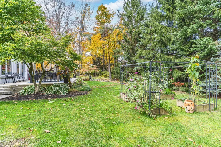 DISTINGUISHED HORSESHOE HIGHLANDS ESTATE ON A SERENE CUL-DE-SAC SETTING! Nestled on a quiet cul-de-sac in the prestigious Horseshoe Highlands, this elegant home offers over 3,650 finished sq ft of timeless style and thoughtful design, backing onto a former golf course surrounded by mature trees and manicured gardens. Sunlight fills every corner of the open-concept layout, where large windows, rounded corners, and refined lighting create an atmosphere of understated luxury. The bright kitchen features wood cabinetry, stainless steel appliances, a gas cooktop, a breakfast bar, and a breakfast area overlooking the yard. A formal dining room with soaring ceilings and dramatic arched windows creates a stunning backdrop for elegant gatherings, while the sunken family room with a tray ceiling and gas fireplace, and the living room with a wood-burning fireplace and wet bar, offer warm and inviting spaces to unwind. The primary suite feels like a private retreat with dual walk-in closets, a five-piece ensuite featuring a dual-sink vanity, a glass-walled shower, a soaker tub, and a walkout to its own secluded deck through double garden doors. Two additional bedrooms share a stylish three-piece bath, while a convenient main-floor laundry adds everyday ease. The partially finished lower level offers a generous recreation room, office, wine cellar, and three-piece bath, providing versatility for any lifestyle. Outdoors, a fully fenced yard with two decks, including one featuring dual pergolas, is framed by lush landscaping, vibrant gardens, and vegetable beds. A double-car garage with inside entry and driveway parking for up to ten vehicles completes this exceptional property. Perfectly positioned within minutes of the new elementary school, community centre, medical clinic, park, and tennis courts, and under 20 minutes from Barrie’s RVH and Georgian College, with year-round recreation close at hand, including skiing, golf, hiking, and Vetta Nordic Spa.