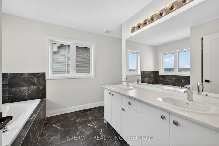 Welcome to luxury living in this never-lived-in 2,065 sq. ft. (builder’s plan) two-storey home. From the moment you step into the soaring two-storey foyer, the modern elegance of this 4-bedroom, 3-bathroom residence is evident. The main floor features a seamless layout with upgraded tile in the foyer, main hall, and powder room, complemented by matte black hardware, a stained staircase, and direct garage access for added convenience. At the heart of the home is a thoughtfully designed kitchen with a sleek island, enhanced cabinetry, deep upper cabinets above the fridge, upgraded countertops, a stylish backsplash, and an undermount rectangular sink-ideal for both everyday living and entertaining. The kitchen and breakfast area are finished with upgraded flooring, creating a clean, cohesive space. Upstairs offers second-floor laundry, well-sized bedrooms, and upgraded hallway flooring. The primary suite includes a large walk-in closet and a spa-like ensuite with a deep soaker tub, glass shower with upgraded tile, and a double sink vanity. The main bathroom and powder room feature upgraded cabinetry and hardware, with black exterior door hardware completing the home’s modern look. Nestled in a premier master-planned hub with a school already built, you’ll enjoy future amenities including scenic trails, shops, and vibrant parks. Experience the perfect blend of luxury and community, all just minutes from the world-famous beach! With a 2-car garage and pristine curb appeal, this home is ready for its very first owners. Some photos have been virtually staged for illustrative purposes only.