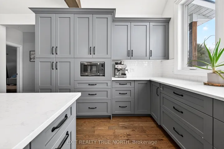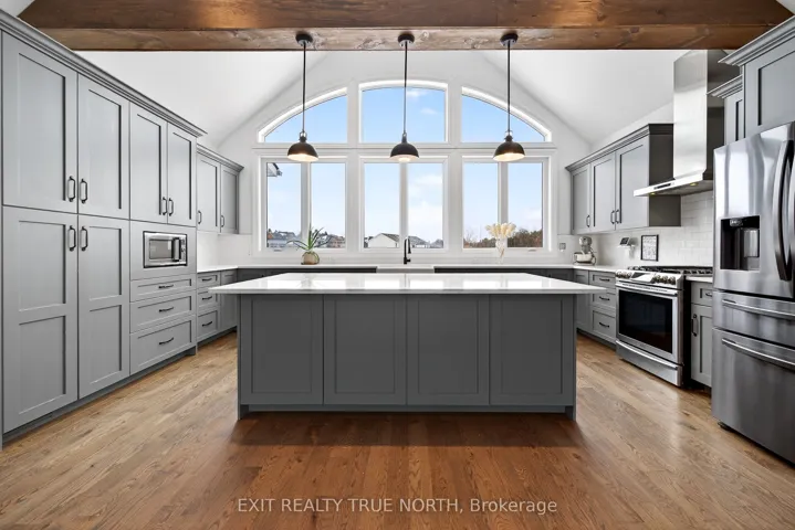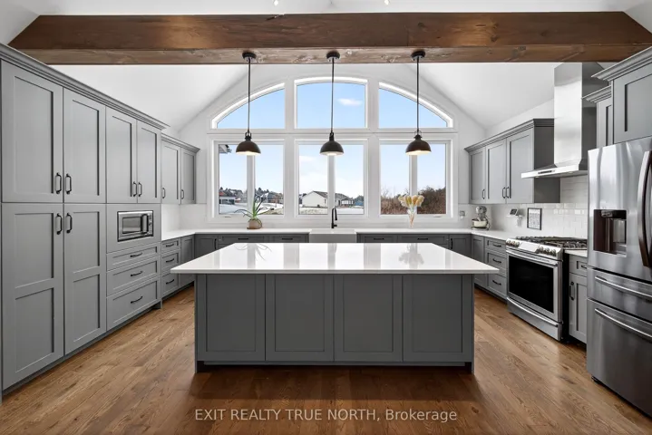 Set on just over an acre in the quiet community of Lafontaine, this exceptional home offers privacy, natural surroundings, and a level of craftsmanship that’s evident throughout. The gently sloping lot extends into your own apple orchard with no neighbours behind, offering a great balance of space and functionality for outdoor enjoyment and activities. Inside, the main living area features hardwood flooring, cathedral ceilings with exposed beams, and large front and rear windows that fill the space with natural light. The stunning chef-inspired kitchen is thoughtfully designed for both everyday living and entertaining, featuring quartz countertops, a standalone island, and seamless flow into the dining and living area complete with a cozy gas fireplace. The primary suite includes a walkout to the back deck, a walk-through closet, and a finished four-piece ensuite. With three bedrooms and two full bathrooms, the layout works perfectly for anyone seeking quality main floor living. The fully finished lower level offers additional flexibility and space with radiant in-floor heat, a large open area for recreation, fitness, or work, plus two additional bedrooms-perfect for extended family or guests. A separate heated garage and workshop adds valuable versatility, complete with its own radiant in-floor heat and a convenient two-piece washroom-ideal for hobbyists, contractors, or anyone needing a dedicated workspace. Located just minutes from Lafontaine Beach Park, you’ll enjoy easy access to one of the area’s best sandy shorelines for swimming, kayaking, and sunset walks, while everyday amenities and dining are just a short drive to Midland and Penetanguishene. Don’t let this amazing opportunity pass you by!