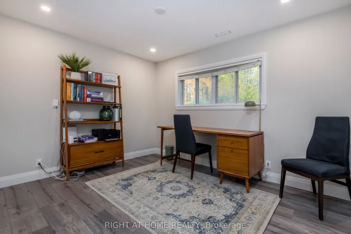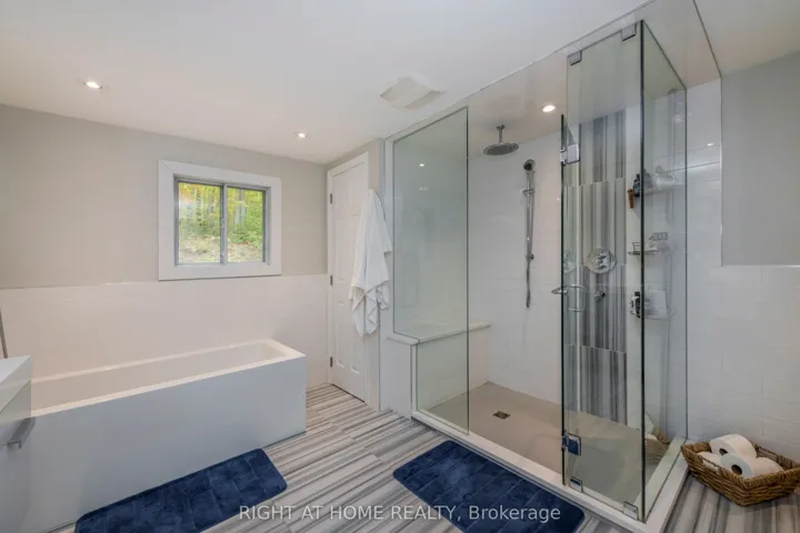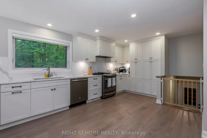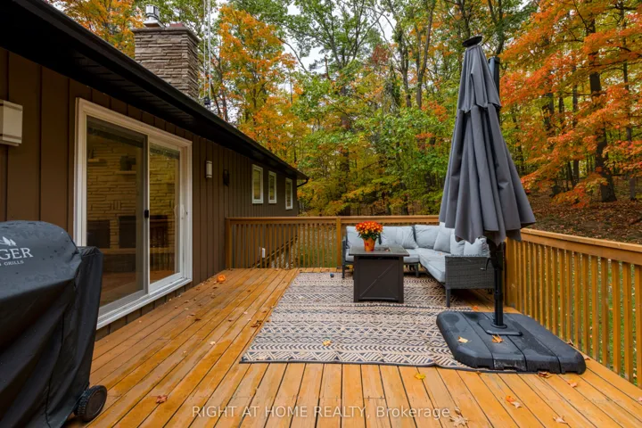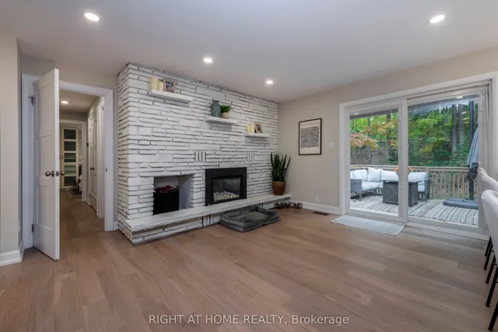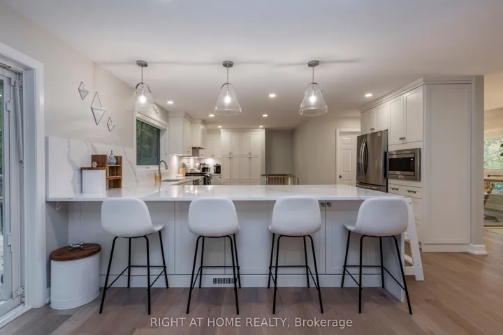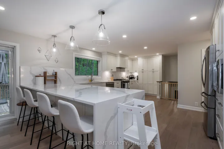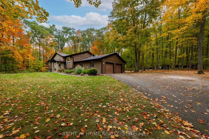 Welcome to this exceptional, one-of-a-kind home in the highly sought-after community of Simcoe Estates. Situated on a private, mature lot spanning over two acres, this residence offers the perfect blend of luxury and tranquility. Step inside to a naturally bright, open-conceptliving space. Gleaming hardwood floors, recessed pot lights, and a stunning glass railing onthe oak staircase create a sophisticated, modern atmosphere. It boasts custom storage units, a beautiful waterfall-edge quartz counter and backsplash, and a cozy gas fireplace that seamlessly connects to the living room. From the living area, walk out to a magnificent three-tiered deck, ideal for enjoying the surrounding natural beauty. After a long day, retreat to the spa-like primary bathroom, complete with heated floors, a large soaker tub, and a refreshing rain shower.