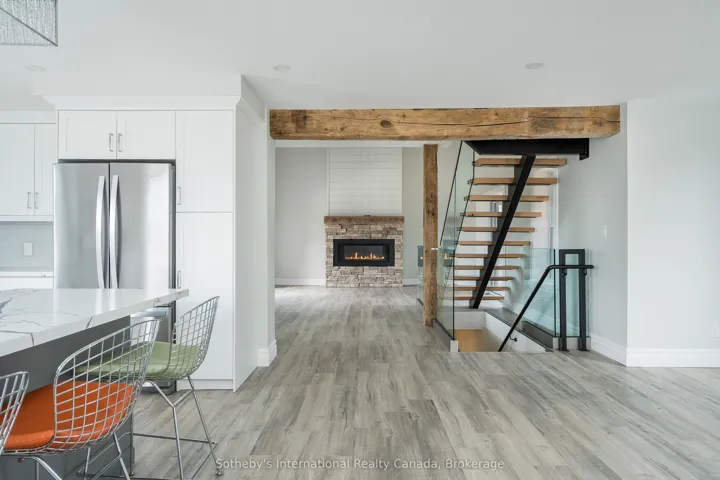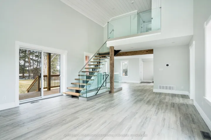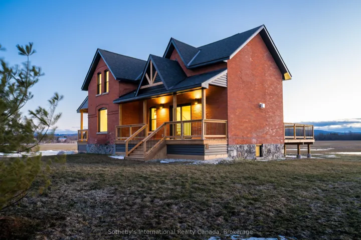 Solid brick farmhouse circa 1900, fully renovated inside and out, offering over 2,100 sq ft of finished living space on a private 2.6-acre parcel in Clearview Township. Blending timeless character with modern design, this property is surrounded by mature trees and open countryside, capturing stunning 180-degree views of the Niagara Escarpment, with sunsets and the evening lights of Blue Mountain Resort in the distance. The thoughtfully redesigned interior features an open-concept main level with soaring cathedral ceilings, a propane linear fireplace, and expansive windows that flood the space with natural light. The kitchen is equipped with a large centre island, quartz countertops, and stainless steel appliances, ideal for everyday living and entertaining. A striking mono staircase with glass railing adds architectural appeal, while multiple walkouts lead to three new decks, creating seamless indoor-outdoor living. A 3-piece bathroom completes the main floor. Upstairs offers two spacious bedrooms and a Jack and Jill 4-piece bathroom with double sinks, a soaker tub and standalone shower. The fully finished lower level provides a bright family room, additional bedroom, and office, bringing the total to 2+1 bedrooms. Extensive upgrades (2023-2025) include new windows, doors, roof, insulation, well, septic, and mechanical systems. In-floor heating in bathrooms, water treatment system, air exchanger, and on-demand hot water ensure year-round comfort. Ideally located minutes to Blue Mountain, Collingwood, Wasaga Beach, and Creemore for skiing, beaches, trails, dining, and shopping.