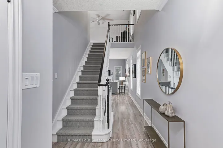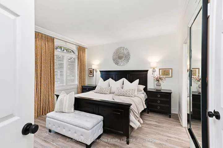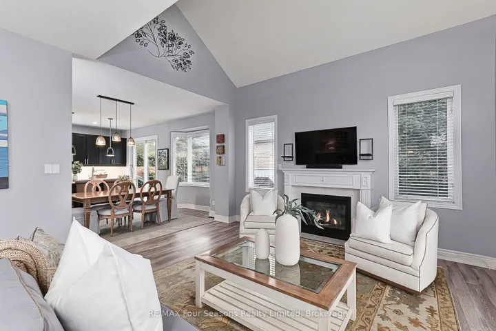 Chic & Coveted in Olde Towne Collingwood! Timeless Charm meets Modern Luxury in Prime Downtown Location~ Tastefully renovated detached brick home (2465 sf of finished living space ) in the heart of one of Collingwood’s most sought-after neighbourhoods. Enjoy small-town charm with top-tier urban amenities and year-round walkability to downtown dining, boutique shopping, waterfront trails, and cultural attractions. This versatile bungaloft floor plan offers ideal MAIN-FLOOR living, perfect for a range of lifestyles. The chef’s kitchen (appliances 2023) features a peninsula island, breakfast bar, and spacious dining area-ideal for both daily life and entertaining. The open-concept Great Room is flooded with natural light, featuring vaulted ceilings and a cozy gas fireplace. Outside, enjoy a private, south-facing low maintenance courtyard for al fresco dining or quiet relaxation. The covered front porch (west-facing) offers the perfect place to enjoy a glass of wine and the Georgian Bay breeze! Main-floor primary suite is a true retreat and includes a walk in closet and a spa-inspired ensuite with double vanity, walk-in shower, and elegant soaker tub. Upstairs, find two generous bedrooms, spacious loft area (office/library or flex Space) and a renovated 4-pc bath with heated floors and glass walk-in shower-ideal for guests or family. Step inside from the attached garage (19.62 X 10.93 ft ) into a stylish mudroom/laundry area and convenient powder room. The finished lower level offers a bright rec room (gym/craft room) with fireplace, plus a storage/workshop area. Meticulously updated throughout-just move in and enjoy! Additional Highlights~ A/C (2023), 3 Bathrooms Beautifully Renovated, Kitchen Backsplash, New Patio Door (2023) to Garden, Walk in Closet Enhancement (2026)~ Loft Bedroom, Designer Lighting, Washer/ Dryer (2020), Eave trough/ Gutter System (2022), Driveway Interlocking Stone, Custom Cabinets in Storage Room, Utility Sink in Storage Room.