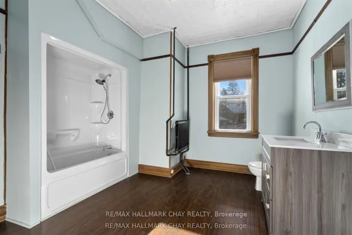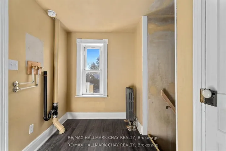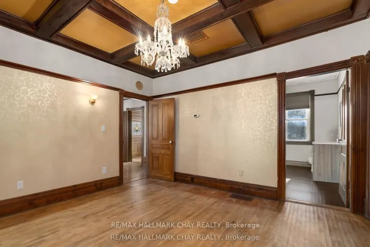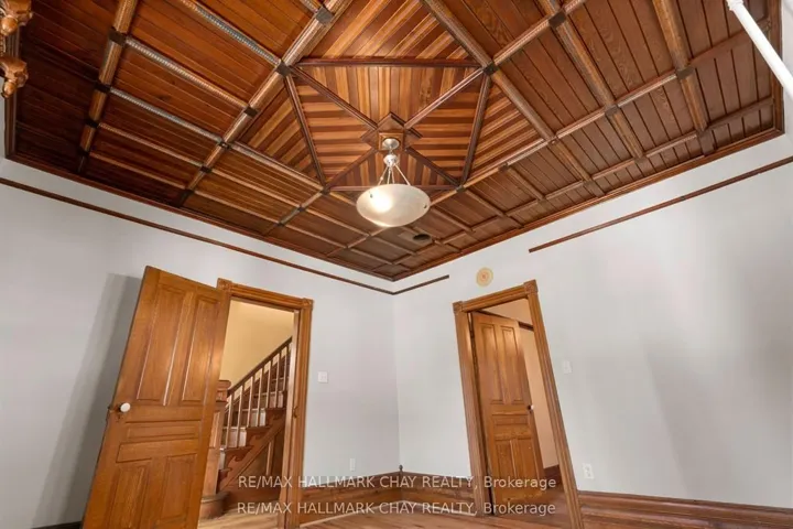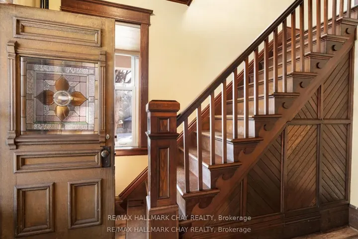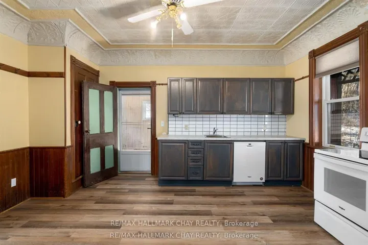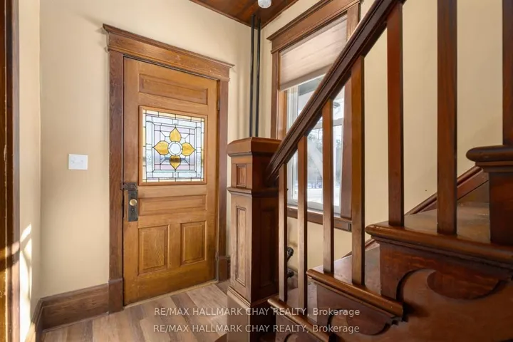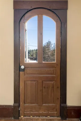 Welcome to the Davenport House. This beautiful century custom builders home will call you with it’s unique custom finishes. The wrap around covered porch, original craftsman front door with stained glass. Custom wood work staircase, balusters and under staircase storage wood panels. Crown molding, 9 inch baseboards and wood detail custom ceiling. Classic century style with 2 separate stair cases. Kitchen offers the original Tin ceiling a walkout to side deck and a back 3 season den and enclosed storage room and back staircase to the upper level. Pantry/laundry room off kitchen. Separate dining room and living room. Main floor generous sized bathroom in addition to the upstairs full bathroom. Upper sunroom with walkout to the balcony. This home offers 3 upper bedrooms. This is an extremely well maintained century home. Updated gas hot water tank, updated copper electrical 200 amp breaker panel. Updated plumbing, basement walls have spray foam insulation and new septic. All exterior walls have been insulated. Most windows are updated, roof in in good condition. Heating cost is very efficient with the concrete exterior walls and added insulation. Outdoor structure a detached smaller barn and garden shed. Close hwy access 15 min from Barrie. Located across the road from a park. Close to skiing, golf, hiking and snowmobiling.