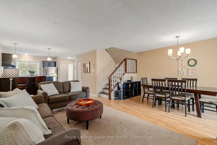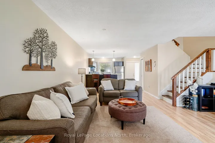 Discover this bright, spacious 3-bedroom, 2-bath condo, perfectly located at Livingstone Resort (formerly Cranberry). The open-concept main floor features a beautiful kitchen with stainless steel appliances, ideal for entertaining or quiet relaxation. Enjoy the convenience of a large laundry room and walk-outs from both the living area and the upstairs primary suite, which boasts a generous ensuite and walk-in closet. With durable laminate flooring throughout, a new gas fireplace provides efficient heat, and a gas BBQ hookup on the patio makes outdoor dining a breeze. An outdoor locker offers extra storage. Embrace optional access to Cranberry Resort amenities (for a modest annual fee) and relish being just minutes from the slopes, downtown Collingwood, walking trails, and premier golf courses.