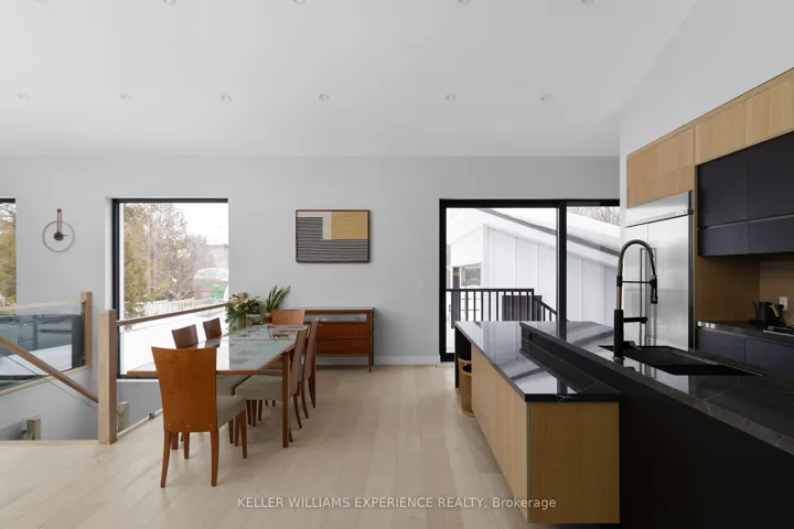Architectural. Refined. Turn-Key. Exceptional custom-built bungalow (2021) offering over 4,300 sq ft of finished living space, complete with a private courtyard retreat, insulated Quonset hut, and summer house. Constructed with R35 ICF for superior efficiency and durability, and finished with a Standing Seam aluminum roof, aluminum siding, and aluminum windows. Striking angular rooflines, rich wood accents, and professionally landscaped grounds create remarkable curb appeal. Open-concept interior featuring 17-ft cathedral ceilings, engineered hardwood flooring, and a chef-inspired kitchen imported from Greece with porcelain countertops, waterfall island, premium Kitchen Aid and Monogram appliances, and a full butler’s pantry. All main-level bedrooms offer private ensuites, including a spa-like primary with freestanding tub and glass shower. Fully finished lower level with 9-ft ceilings, rec room with fireplace, wet bar, office, bonus room, additional bedroom, laundry, and 4-piece bath. Gas hot water on demand. 200-amp service (home), 100-amp (garage), 60-amp (Quonset hut). Outdoor courtyard includes gas line; raised garden beds and greenhouse complete the property. A rare, design-forward offering combining craftsmanship, efficiency, and lifestyle.