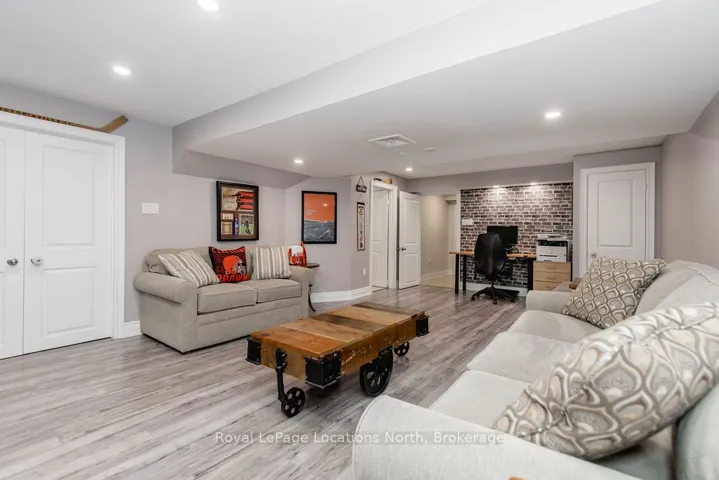 Welcome to this well-maintained 4 bedroom, 5 bathroom, 3,000+ sqft home located on a quiet cul-de-sac in a sought-after Wasaga Beach neighbourhood, just 5 minutes to the beach and Marlwood Golf Course, walking distance to the library, and upcoming K-12 School and community hub as well as easy access to Barrie. The main floor features a grand 18-ft ceiling entry with a sitting area and staircase to the upper balcony, a formal dining room, and an open concept living room and kitchen. The kitchen offers granite countertops, updated cabinet doors, a new gas stove and hood, and a great sized island perfect for hosting with plenty of space for cooking and baking. Engineered hardwood flooring runs throughout the main level, complemented by upgraded baseboards, upgraded mouldings, and fresh paint (2022), giving the home an upscale feel. Inside entry to a double car garage and a convenient powder room complete this level.Upstairs offers 3 large bedrooms, including an oversized primary suite with walk-in closet and ensuite featuring a glass shower, double sinks, and a soaker tub. A second bedroom also includes its own ensuite and walk-in closet, plus an additional 4-piece bathroom. With spacious bedrooms and two ensuites, this is a rare find for growing families.The finished basement adds a 4th bedroom, full bathroom with walk-in shower, and the perfect cozy rec room or man cave, also ideal as a theatre room. An unfinished area with plumbing rough-in offers potential for a kitchenette or in-law suite. Major updates include furnace (2023) and A/C (2023) with transferable 10-year parts and labour warranty. Additional features include 200 amp service, wired security system, gas BBQ line, garage door openers, and a fully fenced oversized yard.