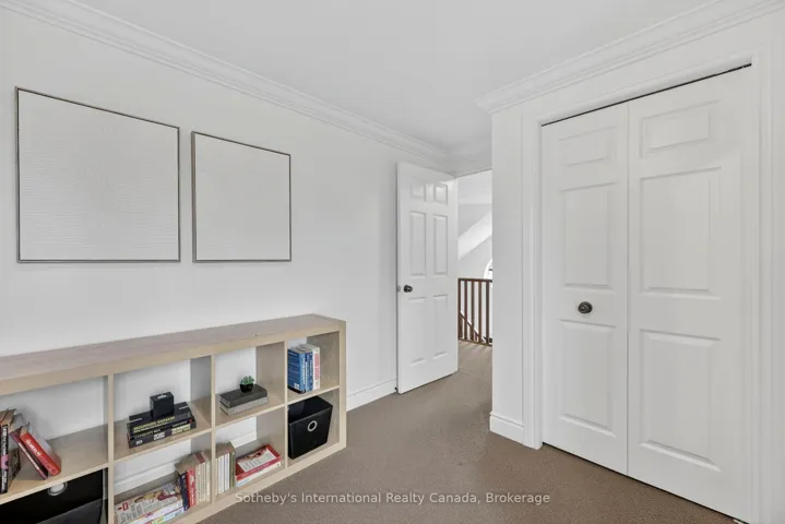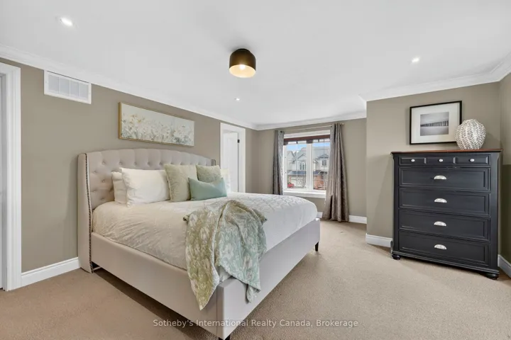 Welcome to 23 Connor Avenue, one of the few Fraser Models in the desirable and family oriented Georgian Meadows community on the west side of Collingwood. This beautifully maintained 4-bedroom, 3-bathroom home on a corner lot offers approximately 2,200 sq ft of bright, open-concept living space designed for family living and entertaining. The main floor features 10-foot ceilings, crown moulding throughout, hardwood and ceramic flooring, an electric fireplace with potential for a gas hookup, and a spacious living, dining, and kitchen area filled with natural light. The recently updated kitchen includes custom cabinetry and a large island, with walkout access to the back deck and garden. A custom-built library provides a perfect work-from-home or reading space. Upstairs offers a large primary suite with walk-in closet and 4-piece ensuite, plus three additional bedrooms. Double garage with interior entry, landscaped yard with in-ground sprinkler system, and an unfinished basement with high ceilings, cold cellar, storage and with future potential for a walk out/separate entrance; roof was done in 2020.With Georgian Meadows Park directly across the street and trails just steps away, this location offers an easy active lifestyle, only minutes from downtown Collingwood, Blue Mountain, golf, and Georgian Bay. Also a short walk to Side Launch Brewery, a brand new indoor baseball facility and indoor soccer pitch.