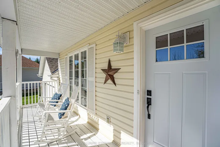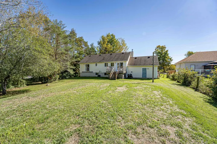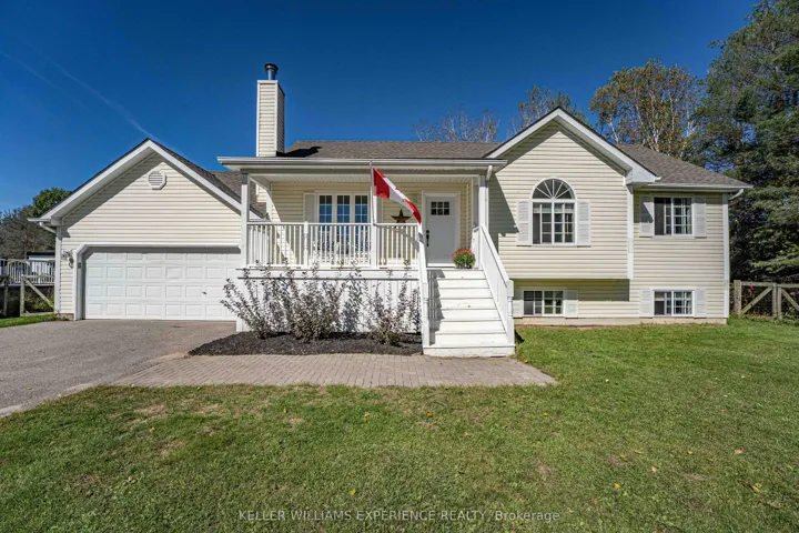 Bright & Beautiful Home on a Large Corner Lot in New Lowell. Set on a quiet street in the charming town of New Lowell, this home welcomes you with a spacious covered front porch and a bright, open-concept layout. The main floor features hardwood floors throughout the living and dining rooms, with French doors leading to the back deck and a private view. The kitchen offers ample space for meal prep and family gatherings. Three well-sized bedrooms complete the main level, including a primary bedroom with semi-ensuite access to the full bathroom. The lower level expands your living space with a massive recreation room featuring a cozy wood fireplace, plus a large utility room with laundry, a rough-in for a 2nd bathroom and abundant storage options. Notable Updates: roof (2017), furnace (2022), A/C (2007), hot water tank (2011). Enjoy peaceful country living just minutes from Stayner, Angus, and Collingwood – perfectly balancing small-town charm with convenience.
