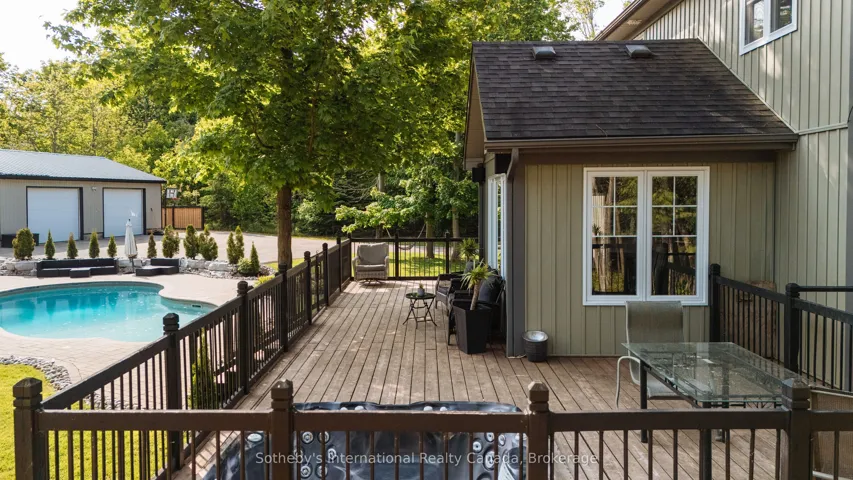 Welcome home to 129 Bass Line – where serene luxury and family comfort seamlessly blend. Set on nearly 1.8 lush acres, this spacious 5-bedroom, 3-bath residence offers 3,400 sq ft of bright, inviting living space. The thoughtfully designed interior features a spacious kitchen perfect for entertaining, an airy dining room, and an inviting living area anchored by a custom stone propane fireplace and soaring ceilings. Upstairs, retreat to the expansive primary suite, complete with a private ensuite and calming forest views. Step outdoors to your own personal resort: a heated saltwater pool, pool house with bar and bathroom, and a relaxing hot tub set seamlessly into the deck. The beautifully landscaped grounds include vibrant gardens, mature trees, and a tranquil natural pond – creating a peaceful escape. A cozy 4-season bunkie with electrical and Wi Fi offers flexible space for guests, hobbies, or remote work. Perfect for hobbyists, the impressive 1,200 sq ft workshop is equipped with in-floor heating, 200-amp service, and ample workspace. Fully fenced and secured by automatic gates, the property provides privacy and peace of mind. Ideally located in the coveted Marchmont school district, you’re just steps from Bass Lake and minutes to conveniences. 129 Bass Line isn’t just a home – it’s a lifestyle.
