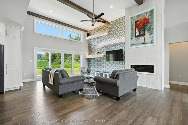 A Masterpiece of Modern Elegance in a Tranquil Country Setting. Prepare to be captivated by this custom-built bungalow a residence that redefines luxury living. Meticulously crafted with premium upgrades throughout, this home offers an exquisite blend of opulence, functionality, and serene countryside charm, all just minutes from Orillia. Step inside the expansive open concept main level, where natural light floods through oversized windows, illuminating every curated detail. The heart of the home an entertainers dream kitchen features: massive quartz-topped island, full wet bar, generous walk-in pantry and Custom cabinetry with designer lighting. Flowing seamlessly from the kitchen is the great room, a dramatic space boasting 14-ft beamed and shiplap ceilings, a striking fireplace, and custom LED ambient lighting. Step through oversized glass doors to a grand stone patio, ideal for alfresco dining and sophisticated outdoor entertaining. The primary suite is your personal sanctuary, complete with: spa inspired 5-piece ensuite featuring a freestanding soaker tub, luxurious walk-in shower, and dual vanities, fully outfitted walk-in closet with custom storage solutions. Two additional generously sized bedrooms share a designer 5-piece bath, while the main floor is completed by a stylish mudroom, laundry room, and wide plank engineered hardwood flooring throughout. Descend to the fully finished ICF basement, where possibilities abound. This level offers: An additional bedroom and full bathroom, A state of the art synthetic ice hockey rink (a truly rare and extraordinary feature in a private residence), Expansive space for a home theatre, gym, or recreation lounge. The oversized, heated 3-car garage is equally impressive, fully insulated with epoxy coated floors. Set on a peaceful lot backing onto open farmland, the property offers direct access to the OFSC snowmobile trail, and is ideally situated just a short drive to local beaches, shopping, dining, and more.