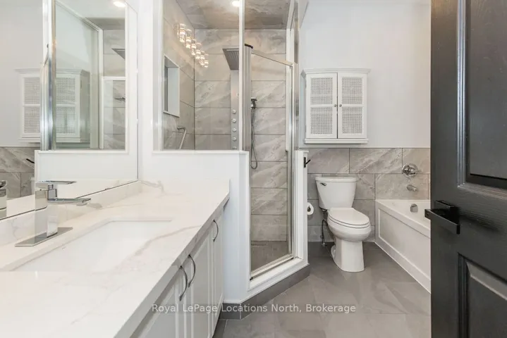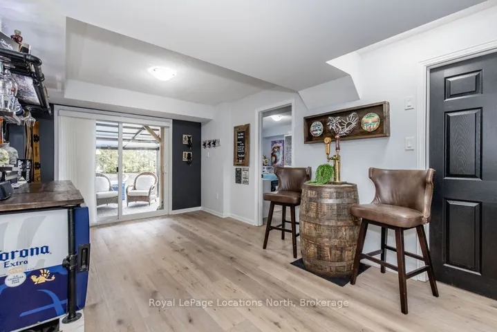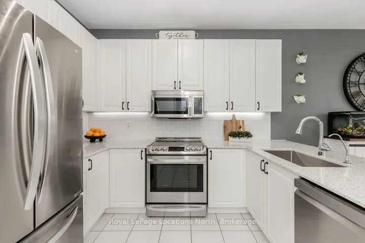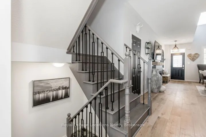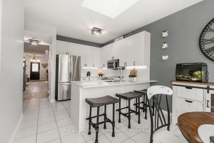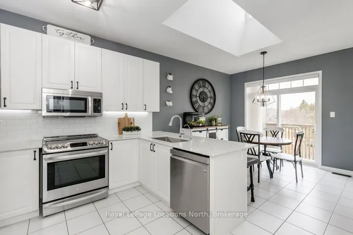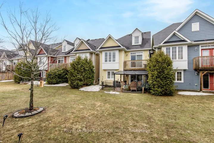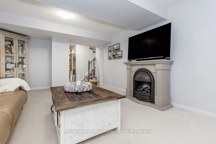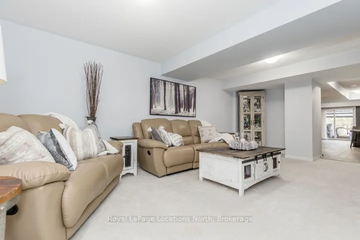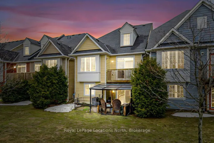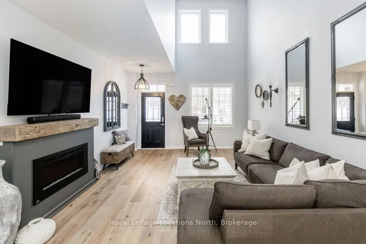 Maintenance-free living in a sought-after golf course community. A covered front porch welcomes you into the main floor, featuring engineered hardwood flooring, high ceilings, and a bright, open-concept layout with a living room centered around a fireplace. The kitchen offers granite countertops, stainless steel appliances, a skylight for added natural light, and a walkout to a private deck overlooking green space.The main floor primary bedroom includes a walk-in closet and a 4-piece ensuite with custom shower. The second level features a loft-style space suitable for a home office or additional living area, along with a spacious bedroom and a 4-piece bathroom. The finished walkout basement provides additional living space with a rec room, games room, bedroom, full bathroom, and access to the backyard.Additional features include an owned reverse osmosis system, and inside entry from the garage. Low-maintenance living with exterior maintenance(roof, windows) snow plowing, grass cutting, landscaping and common elements included. Located in a desirable community close to golf, trails, and local amenities, plus exciting growth in the area including a new high school, the twin-pad arena, and a modern library and event space bringing even more convenience and community life to Wasaga Beach.
