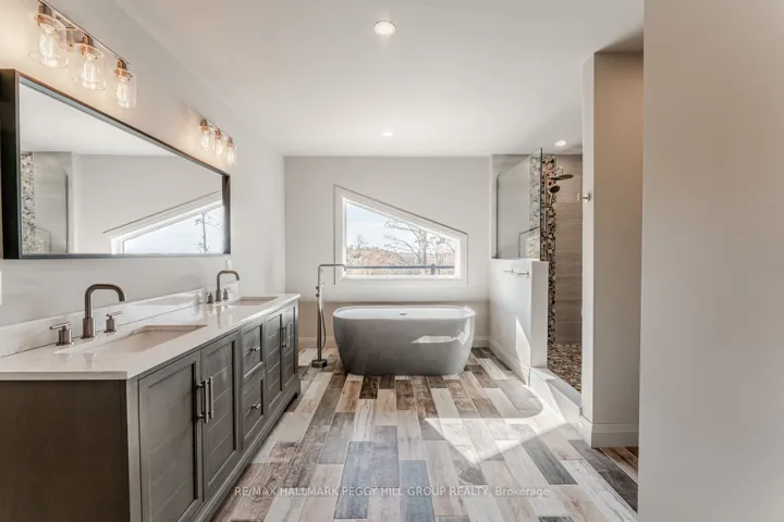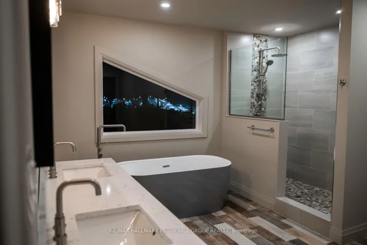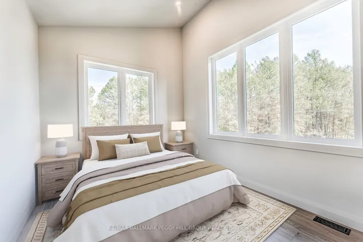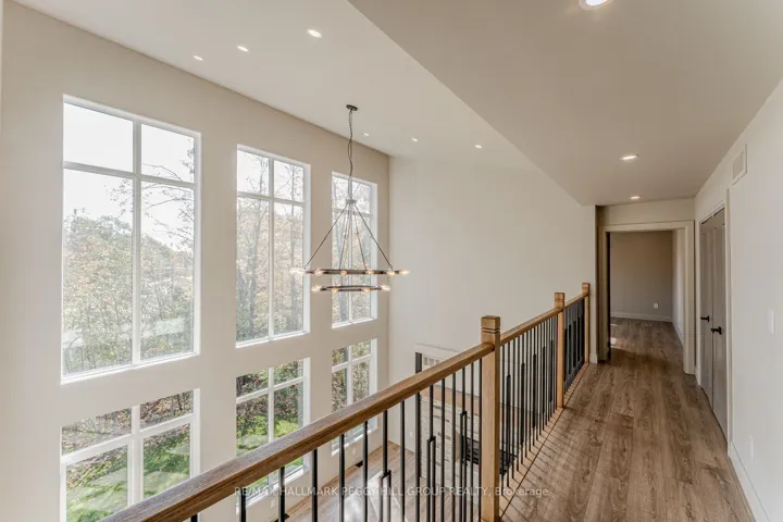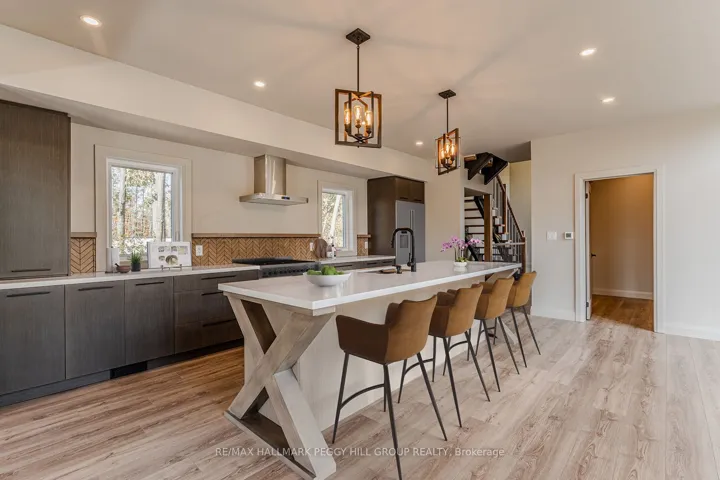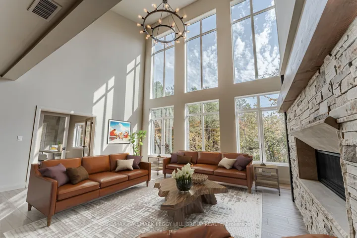 2024-BUILT 4,200+ SQ FT CHALET-STYLE RESIDENCE MEETS FOUR-SEASON ADVENTURE IN HORSESHOE VALLEY! Indulge in the artistry of modern design at this custom-built 2024 home in Horseshoe Valley, capturing panoramic western views and sunsets from its commanding hilltop setting. Boasting over 4,200 sq ft of above-grade living space, this modern chalet showcases striking black Hardie Board siding, stone facade accents, a fibreglass roof, and multiple glass-railed decks designed to celebrate the surrounding scenery. The open-concept main level is ideal for entertaining, highlighted by a 24-ft vaulted ceiling, floor-to-ceiling windows, and a double-sided Napoleon fireplace connecting the great room to the dining/family areas. The gourmet kitchen features Caesarstone quartz countertops, custom two-tone cabinetry, a dramatic X-leg island, a chevron tile backsplash, a pantry, and modern lighting, all flowing to a dining area with built-in shelving and a walkout. A private main-floor office provides a peaceful workspace, while the third level hosts the luxurious primary suite with its own fireplace, balcony, walk-in closet, and spa-inspired ensuite with a freestanding tub, double vanity, and glass shower, along with two additional bedrooms, a full bathroom, and a laundry room. The ground level extends the home’s versatility with 9’9″ ceilings, a bright rec room, an additional bedroom, and a full bathroom. Engineered hardwood, ceramic tile finishes, and meticulous craftsmanship are complemented by superior construction featuring an ICF foundation, LVL beams, and double-studded 2×6 walls. Within walking or golf cart distance to Horseshoe Resort, The Valley Club, tennis courts, and scenic trails, and just minutes to Vetta Nordic Spa, Copeland Forest, Lake Horseshoe, local dining, and Highway 400, this exceptional home is also near a new school, community centre, clinic, and fire station, defining sophisticated four-season living in one of Ontario’s most prestigious destinations.