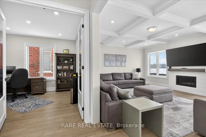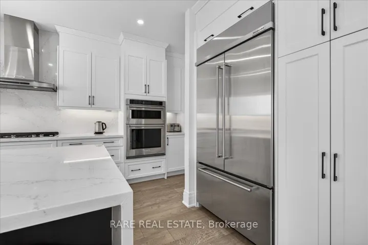 Experience the pinnacle of turnkey luxury in this immaculate 3,945 sq. ft. “Lilac” model by Yorkwood Homes (2023). Situated on a premium lot in the prestigious Stonemanor Woods community of Springwater, this residence blends sophisticated design with modern functionality. Step inside to 9′ ceilings across all three levels and 3/4″ wide-plank engineered Oak hardwood flooring. The main floor is a sun-drenched sanctuary featuring a private office with French doors and an expansive open-concept great room designed for grand-scale entertaining. The chef-inspired kitchen is a showstopper, boasting premium built-in Kitchen Aid appliances, quartz waterfall countertops, and a matching quartz backsplash. The living area, anchored by a sleek gas fireplace, leads out to a newly installed PVC deck and professional interlocking stone walkways. The second floor offers five generous bedrooms and three full bathrooms. The Primary Suite is a true retreat, overlooking peaceful farm fields and featuring dual walk-in closets and a spa-like 5-piece ensuite with upgraded porcelain tiles and a deep soaker tub. Added convenience is found in the second-floor laundry and two Jack-and-Jill bathrooms, providing direct ensuite access for every bedroom. For those seeking multi-generational living or income potential, the unfinished basement is a blank canvas. It features a separate entrance with a dedicated interlocking stone walkway, plus rough-ins for a kitchen and bathroom-perfect for an in-law suite or secondary apartment. The oversized double garage provides lots of added storage and direct inside access. This home offers an elite lifestyle in Stonemanor Woods, a family-oriented enclave known for its expansive trails and parks. While enjoying the tranquility of Springwater, you remain just minutes from Barrie’s North End, providing quick access to RVH Hospital, Georgian College, Highway 400, and the Barrie North GO Station for an easy commute.