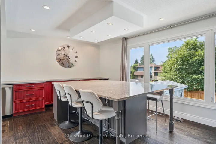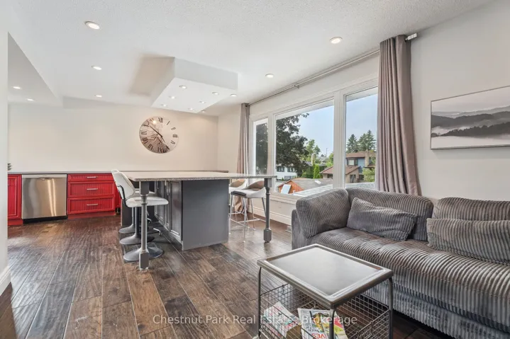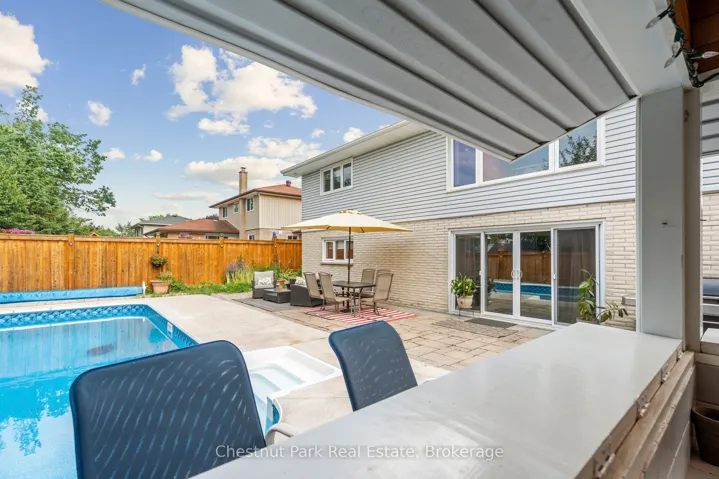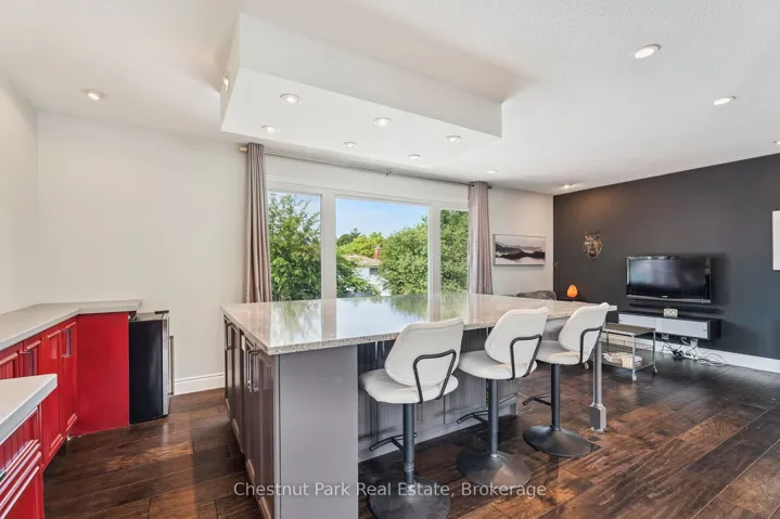Welcome to 16 Davies Crescent an updated all brick 4-bedroom, 2-bath raised bungalow tucked into one of Barrie’s most established family neighbourhoods. Surrounded by mature trees and pride of ownership, this warm and welcoming home offers a rare blend of functionality, style, and outdoor living. The heart of the home is the spacious custom kitchen featuring stainless steel appliances, gas cooking, and an oversized granite island with seating for eight perfect for family meals or entertaining. Large windows flood the main level with natural light and offer beautiful views over the resort-style backyard, making the kitchen and island seating feel like a true extension of the outdoor space. The front porch has been enclosed in glass, creating a charming, light-filled entry. Downstairs, the bright walk-out lower level includes a large family room with a gas fireplace, a fourth bedroom, full bath, and direct access to your private backyard retreat. Step outside to your own oasis with a saltwater pool, cabana, landscaped gardens, and plenty of space to entertain or unwind. Additional highlights include: double car garage, stone paver driveway, mature trees, and excellent curb appeal. Located close to Royal Victoria Hospital, elementary and high schools, Georgian College, shopping, restaurants, and with quick access to Hwy 400 this is a home that truly checks all the boxes. Some images have been enhanced to reflect typical spring conditions.