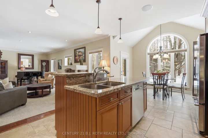 Timeless Estate Living in One of Simcoe County’s Most Prestigious Enclaves. Gracefully poised on a private, fully landscaped estate lot framed by towering mature trees, this former model home by esteemed builder S.L. Witty is a masterclass in timeless architecture and enduring craftsmanship. A grand stone walkway and impeccably manicured grounds create a striking arrival, setting the tone for the elegance within. Inside, a thoughtfully designed split-bedroom layout offers 3 bedrooms, 4 bathrooms, and an impressive loft, blending refined privacy with exceptional functionality. The open-concept main level is illuminated by expansive windows that flood the home with natural light. Rich hardwood floors, crown moulding, California knockdown ceilings, and a gas fireplace create a warm yet sophisticated ambiance. At the heart of the residence, the gourmet kitchen showcases stainless steel appliances, gleaming granite countertops, and seamless flow into the living and dining areas, perfectly suited for elegant entertaining and elevated everyday living. The primary suite is a private sanctuary, complete with a walk-in closet, luxurious 5-pc. ensuite, and walkout to the serene backyard retreat. Above, the expansive loft with its own 2-pc. bath offers exceptional versatility, ideal as an executive office, guest suite, or media lounge. The fully finished lower level extends the living space with an additional bedroom, full 3-pc. bath, fully equipped wet bar, spacious recreation & games area, and abundant storage, designed for entertaining and multigenerational comfort. Outdoors, a stone patio anchors the professionally landscaped grounds, offering rare privacy and tranquility. Perfectly positioned to enjoy the best of the region, this distinguished residence is moments from prestigious golf courses, the fresh harvests of Barrie Hill Farms, and premier ski resorts, offering four-season recreation and an exceptional lifestyle in one of Simcoe County’s most coveted neighbourhoods.
