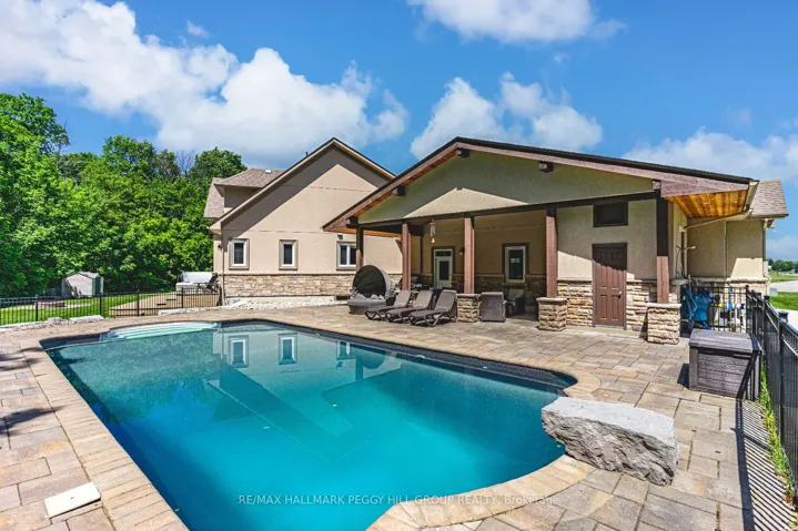 PRESTIGIOUS 2 + ACRE ESTATE WITH OVER 5,200 SQ FT, RESORT-STYLE BACKYARD & A PRIME CUL-DE-SAC SETTING! This extraordinary residence is situated in the highly coveted Wasaga Sands Estates on a private 2.12-acre estate lot with no homes directly behind, backing onto Mc Intyre Creek and the former Wasaga Sands Golf Course. Nestled at the end of a quiet cul-de-sac, it offers a peaceful setting just minutes from shopping, dining and daily essentials. Curb appeal presents a stone and stucco exterior, a three-car garage, manicured landscaping and a commanding architectural presence. Outdoor living is exceptional, with a heated 18 x 36 ft saltwater pool, a stone interlock patio, a pool house with a bathroom and outdoor shower, and a covered entertaining area. A composite back deck with a hot tub overlooks a private treed yard, while a fire pit, invisible pet fence, and garden shed add further charm. Over 5,200 sq ft of beautifully finished living space includes a gourmet kitchen showcasing white cabinetry, granite countertops, a centre island with a second sink, a pantry, a breakfast bar and stainless steel appliances. The open-concept dining room leads to the great room boasting expansive windows, a gas fireplace and a soaring vaulted ceiling. The main floor primary bedroom features dual walk-in closets, a walkout to the backyard and a spa-like ensuite with a soaker tub and glass shower. An elegant office with built-ins and a vaulted shiplap ceiling, a laundry room with cabinets and sink, and a mudroom with built-in bench, hooks and storage enhance main floor functionality. Upstairs, a sitting area overlooks the great room and connects to three generously sized bedrooms and a well-appointed bathroom. The finished basement, accessible via a separate entrance, adds even more space with a large rec room, two bedrooms, bonus room, and full bathroom. Designed for refined living in a tranquil setting, this remarkable #Home To Stay brings together space, comfort and elegance!