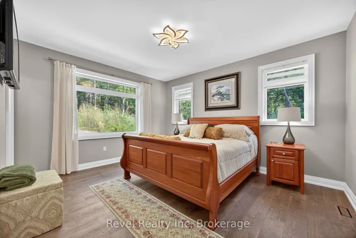 Luxury Living in Prestigious Thunder Beach. Wake up beneath the peaceful slopes of Nipissing Ridge, surrounded by 1.7 acres of beautifully landscaped privacy, with the turquoise waters of Georgian Bay just moments away. This nearly new 3249 sqft executive bungalow offers a rare opportunity to experience refined living in one of the Bay’s most coveted communities. Thoughtfully designed with quality and craftsmanship in mind, the home features an ICF foundation and French drains for long-term durability and energy efficiency. Inside, rich hardwood floors, custom cabinetry, and spa-inspired bathrooms create a warm yet elevated feel throughout. The covered front porch leads into a bright, open-concept layout where a chef’s kitchen takes center stage-complete with a Thor stove, pot filler, walk-in pantry, and multimedia bar-flowing effortlessly into the dining area and covered deck. Expansive windows frame nothing but tranquil treed views, offering rare privacy without compromise. The primary suite is a true retreat, featuring a walk-in closet and a serene ensuite with an oversized glass shower and multiple showerheads for a spa-like experience. Two additional bedrooms and a full bath complete the main level. Downstairs, the fully finished lower level extends your living space with radiant in-floor heating, a custom bar, built-in media area, and large windows that fill the space with natural light. Two more bedrooms, a full bathroom, and a walk-up to the heated garage offer excellent flexibility-ideal for guests or multi-generational living. Beyond the home, the Thunder Beach lifestyle awaits. Enjoy access to tennis courts, a private golf club, and a welcoming social atmosphere that has defined this exclusive community for generations. End each day with breathtaking sunsets over Georgian Bay, where the sky glows in soft hues of pink and gold. This is more than a home-it’s a lifestyle defined by privacy, elegance, and the natural beauty of Georgian Bay.