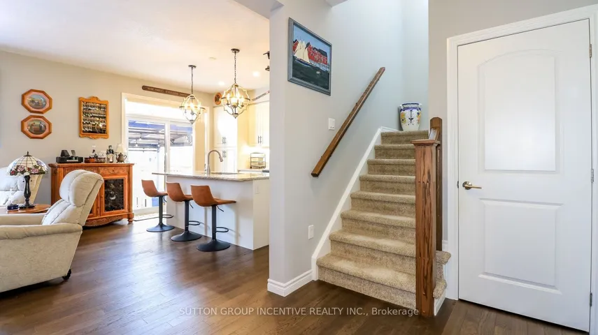Bright spacious townhome loaded with upgrades! Over 1600 sq ft plan w hardwood on main floor. Great working area in kitchen w marble counters, pull outs in cabinets & pantry, s/s appliances & custom blinds. Main floor laundry w butler’s pantry & bar fridge. Large primary bedroom, walk-in closet, built-in shutters, ensuite has walk-in shower. All three good-sized bedrooms have generous closet space. Fenced yard has stone patio, pergola w roll-out awning, raised garden beds. Rare double insulated garage, inside entry, mezzanine storage. Driveway parking for 4 cars. A great family home near hospital, shopping & all amenities.