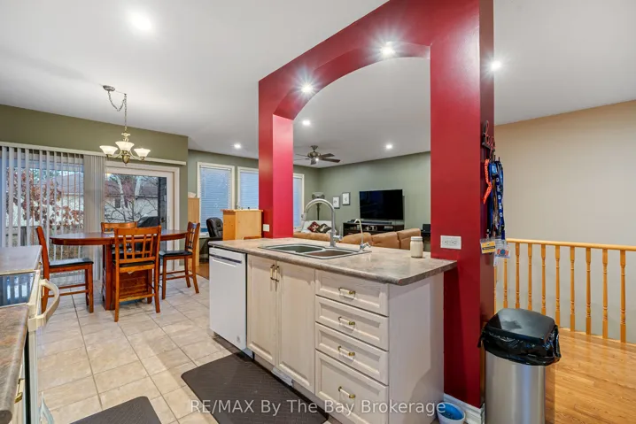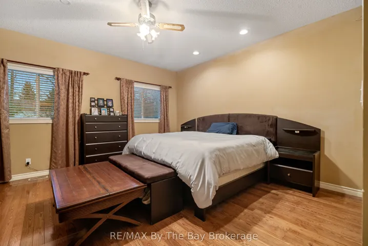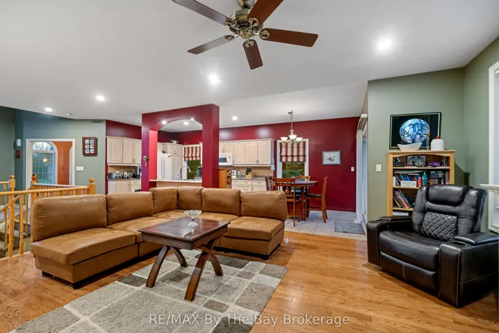 Discover this charming all-brick raised bungalow, ideally situated on an 80′ x 160′ mature corner lot at the end of a quiet cul-de-sac in central Wasaga Beach. This exceptionally private property features a fully fenced backyard, in-ground sprinkler system, and a beautifully treed setting-perfect for morning coffee or quiet evenings on the two-tier deck. Inside, the home offers a warm and inviting layout with 9′ ceilings on the main floor and a striking 14′ ceiling in the dining room, which also works beautifully as a home office or study. The open-concept kitchen and living room create an ideal space for family living, with the kitchen featuring ceramic flooring, a stylish backsplash, large vinyl windows, and an 8′ patio door that leads directly to the deck. The main level includes two generous bedrooms, including a comfortable primary suite with a 4-piece ensuite complete with a 6-ft soaker tub and separate shower. A cozy gas fireplace anchors the living room, while the fully finished lower level offers another inviting gathering space warmed by a freestanding gas stove-perfect for movie nights. This level also features inside garage access, with additional access available from the upper level as well. With over 2,700 sq. ft. of finished living space, the home provides 5 bedrooms, 2 full bathrooms, and one powder room, completed with a mix of ash hardwood, ceramic, and Berber carpet throughout. Added comforts such as central air, central vacuum, an on-demand hot water tank, and a sump pump with a water-powered backup system (no battery required) provide peace of mind and year-round comfort.Additional updates include the roof, completed approximately five years ago. Located in one of central Wasaga’s most desirable, family-friendly areas, this well-maintained property offers exceptional space, privacy, and a welcoming layout that suits both everyday living and entertaining.