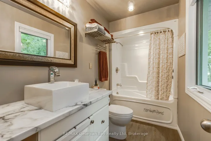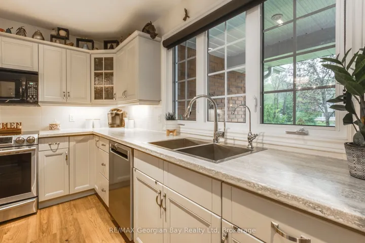 Welcome to the beautiful Gilwood Park neighborhood in Penetanguishene. This lovely open concept bungalow boasts almost 2,500 square feet of living and entertaining space. Open concept updated kitchen with spacious island overlooks living room with stone gas fireplace. Your choice of 2 or 3 bedrooms on the main floor plus one on the lower level; 3-bathrooms; main floor laundry with access to generous double garage; primary bedroom with his/her closets and a convenient ensuite. The fully finished basement includes a huge family room/office space, bedroom, bathroom and plenty of storage areas. Outside, the private, expansive lot features an entertainer’s deck, a lower patio with hot tub, and a fire pit area for endless summer fun. With Georgian Bay water access just around the corner and local amenities a short drive away, this property offers the perfect blend of tranquility and convenience. Septic is in the front so plenty of back and side yard for a pool if desired. Don’t miss your chance to call this place home!