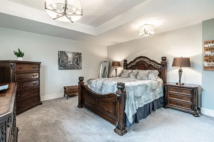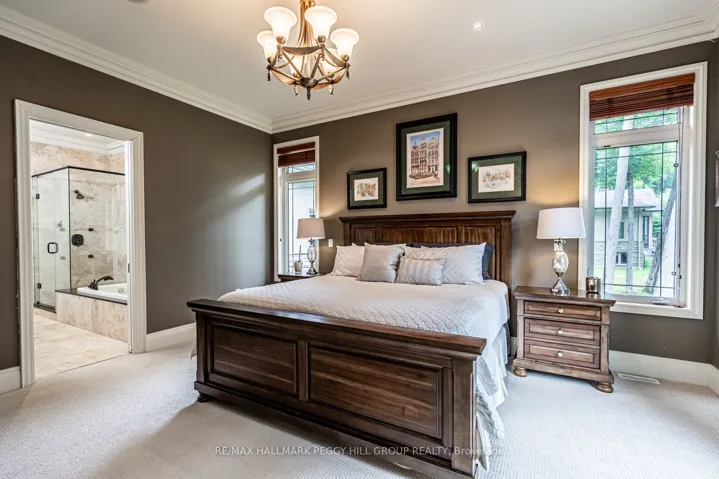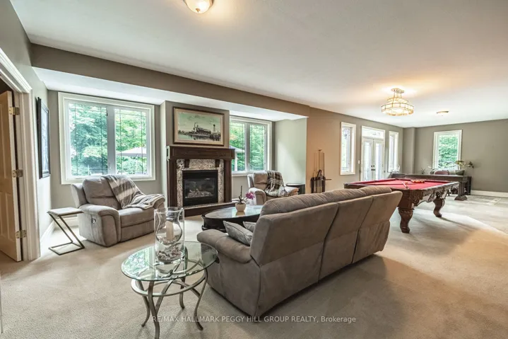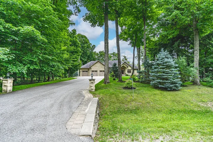 THIS GORGEOUS BUNGALOW REALLY HAS IT ALL WITH OVER 5400 SQFT, A WALK OUT BASEMENT, SEPARATE ENTRANCE FOR IN LAW CAPABILITY & A TRIPLE CAR GARAGE ON A PRIVATE 1.25 ACRE LOT WITH A SALT WATER POOL & POOL HOUSE BACKING ONTO ENVIRONMENTALLY PROTECTED LAND! Tucked away at the end of a tree-lined driveway on the renowned Gallagher Cres, this estate offers over 5,400 fin sqft of living space on more than an acre of privacy, luxury, and lifestyle in one of the area’s most prestigious neighbourhoods. Surrounded by custom homes and just minutes to parks, trails, schools, golf, skiing, and Hwy 400, this stately stone and stucco residence commands attention with its stunning curb appeal, beautiful gardens, and oversized triple car garage. The backyard is an entertainer’s dream, featuring an inground saltwater pool with a newer liner and a stone waterfall, a fire pit, and a pool house complete with a covered porch, all surrounded by extensive interlock. Step inside to discover quality finishes throughout, including crown moulding, wood doors, detailed trim, hardwood floors, and pot lights. The elegant great room presents vaulted ceilings and a gas fireplace, while the formal dining room features a coffered ceiling. The chef’s kitchen is magazine-worthy with granite countertops, a large island, stainless steel appliances including a built-in oven and stovetop, cabinetry topped with crown moulding, a striking wood range hood, and a walkout to the balcony. The main level features 4 spacious bedrooms, including a primary suite with a 5-pc ensuite and a walk-in closet with custom organizers. One bedroom includes a private ensuite, while the other two are connected by a shared bathroom. The finished walkout lower level adds a rec room with a wet bar, a gas fireplace, a theatre room, a gym area, an additional bedroom with built-in wardrobes, and a 3-pc bathroom. Crafted for those who value exceptional living, this is a #Home To Stay that exceeds every expectation!