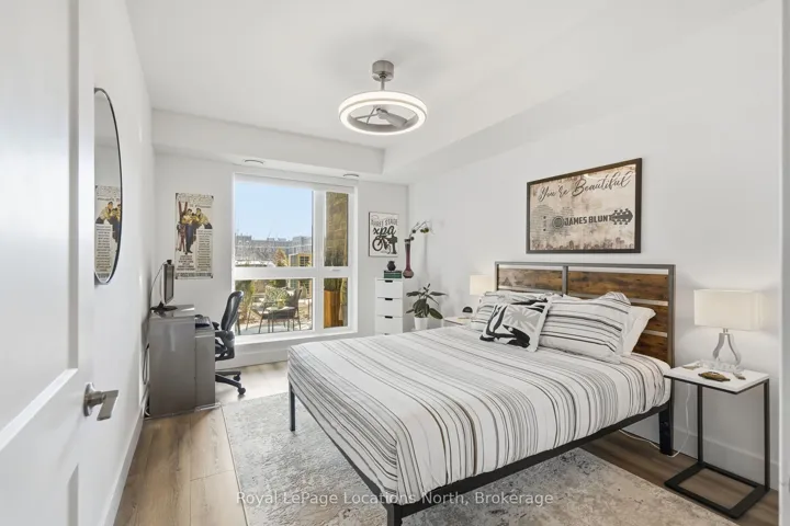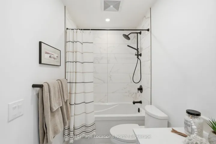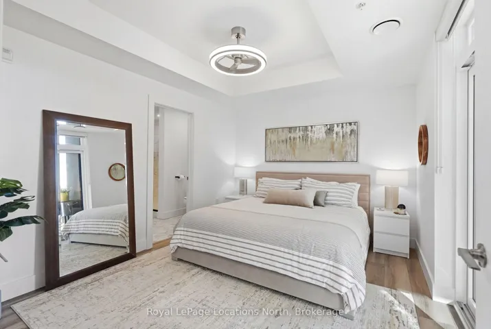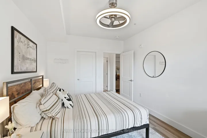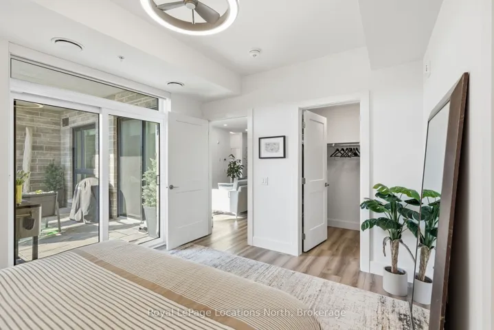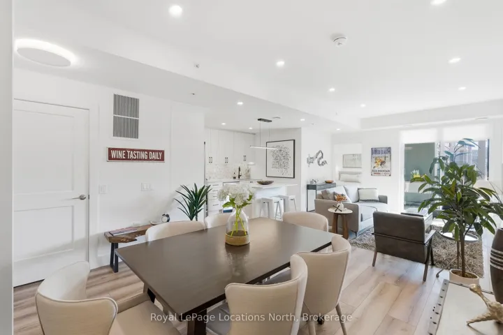 Welcome to convenient ground-floor living at Royal Windsor. This beautifully upgraded 2-bedroom plus den, 2-bathroom condo offers 1,150 sq. ft. of airy, modern living space with an open-concept design. One of only five highly sought-after Empress layouts-and the only one available on the ground floor-this suite stands out for its exceptional accessibility and functionality. Enjoy seamless indoor-outdoor living with two walkouts to street level through sliding patio doors in both the living room and the primary bedroom. For everyday practicality, this property includes two parking spaces, two storage lockers, and an EV charger rough-in. Over $50,000 in upgrades have been carefully curated, including pot lights and upgraded lighting throughout, kitchen enhancements, custom blinds, and tailored shelving and storage solutions. The patio provides a generous outdoor living space with added privacy from neighbouring units, complete with a hot and cold water hose bib. Residents of Royal Windsor enjoy access to an impressive array of amenities, including a rooftop terrace and BBQ area with views of Blue Mountain, indoor pool, fitness centre, golf simulator, party room, and games room. Ownership also includes priority access to Balmoral Village’s Chartwell community for respite or long-term care, along with meal plan options. Ideally located just moments from the shores of Georgian Bay and the slopes of Blue Mountain, this exceptional condo offers a perfect blend of comfort and everyday convenience. Book your private showing today!