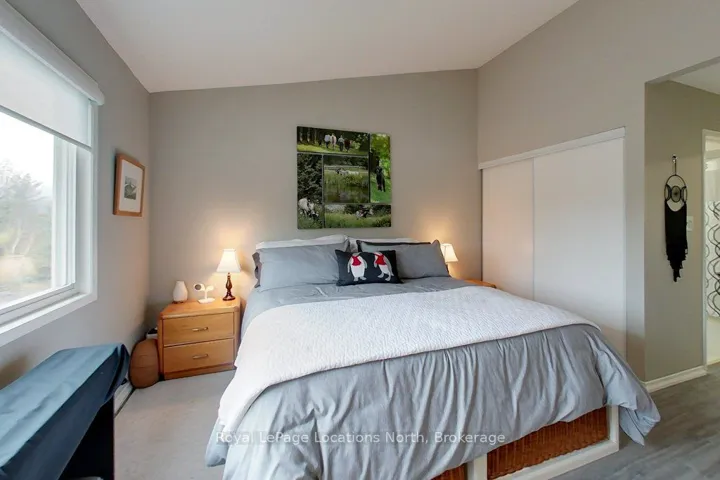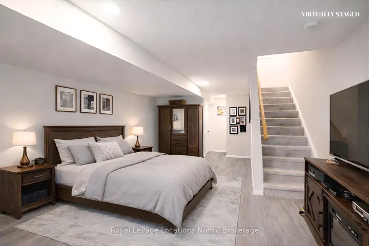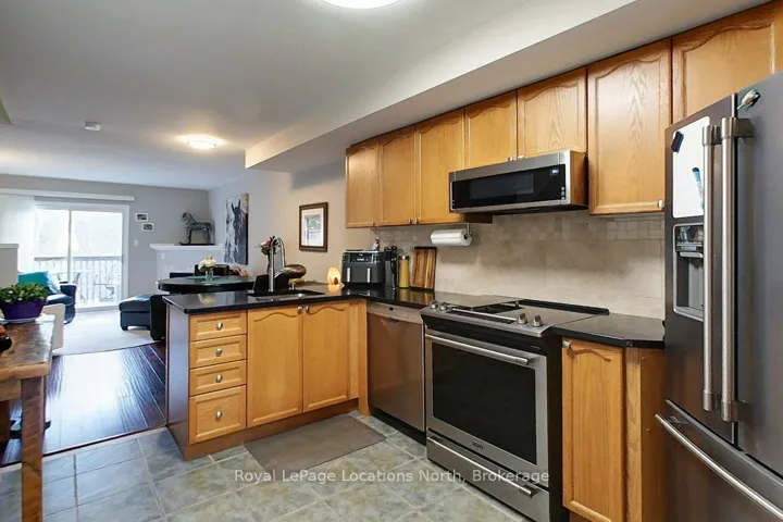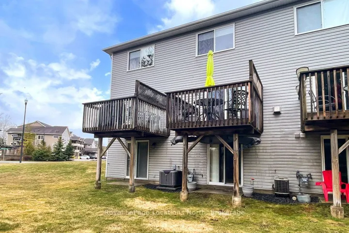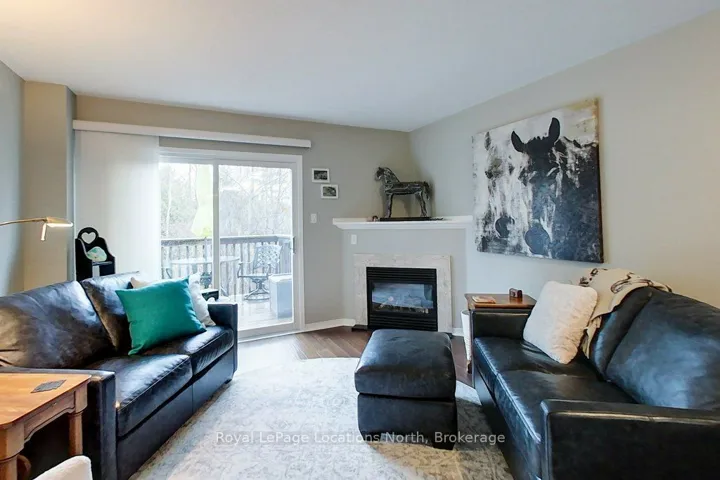 These coveted Royalton Lane residences are rarely offered-an exceptional opportunity to own within the sought-after Cranberry community.This bright and beautifully proportioned 3-bedroom, 3-bath condo blends comfort with understated luxury. The open-concept living space is thoughtfully finished with quartz countertops, ceramic tile in the kitchen and baths, and engineered hardwood flooring, all anchored by a cozy gas fireplace. Step out to your private deck overlooking peaceful green space, with views of Blue Mountain adding a stunning natural backdrop.Upstairs, the spacious primary bedroom features a semi-ensuite, alongside a second generously sized bedroom. The lower level offers remarkable flexibility with a large third bedroom or inviting family room, complete with a full bath and walkout to the backyard-perfect for guests or relaxed evenings in.Ideally located near the Georgian Trail, enjoy effortless access to cycling, walking, and year-round outdoor living-ride to Meaford or stroll into Collingwood. A private locker at your front door keeps all your gear neatly tucked away after a day on the slopes or trails.Extensively updated over the past five years, including new appliances, kitchen backsplash, updated flooring throughout, refreshed stairs, new A/C unit, hot water tank, toilets, and more (full list available in attachments).A refined yet welcoming retreat in one of the area’s most desirable communities.