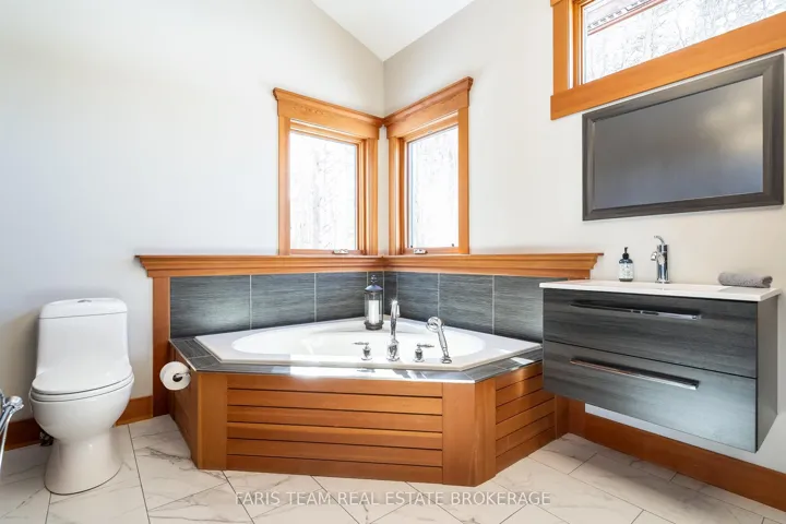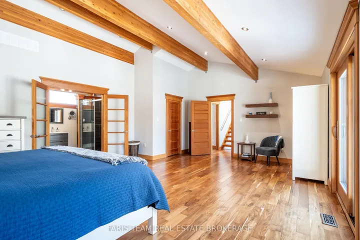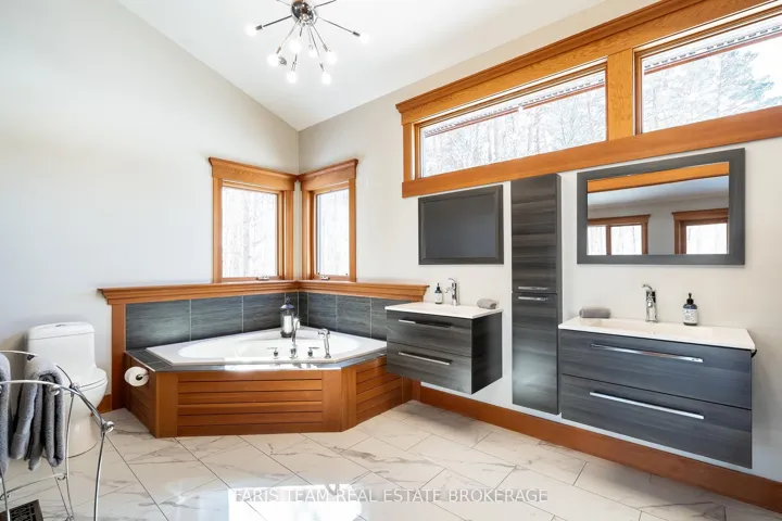Top 5 Reasons You Will Love This Home: 1) This extraordinary estate commands attention on over an acre in a prestigious neighbourhood framed by mature trees, irrigated lawns, and striking rock landscaping, with stamped concrete walkways, an oversized triple garage, and stunning evening lighting, all while sitting just 11 minutes to Orillia and 18 minutes to Barrie 2) Stepping inside, you’re greeted by soaring 23′ vaulted ceilings, expansive windows, and a breathtaking open-concept design with sweeping views of nature, where exposed beams, a dramatic stone fireplace with a reclaimed mantle from the original Houben farmstead, tempered glass railings, and solid Douglas fir doors create a space as storied as it is architecturally stunning 3) The kitchen is a showpiece where engineered hardwood, granite countertops, a large island, tall cabinetry, a walk-in pantry, secondary bar sink, and upgraded lighting set the stage for an Electrolux 6-burner stove and dual refrigerators that make everyday cooking and grand-scale entertaining feel effortless 4) The primary suite is a world unto itself with a vaulted ceiling and private walkout to a stamped concrete patio and hot tub, while the spa-inspired ensuite delivers with heated tile floors, dual floating vanities, a deep soaker tub, and a walk-in shower with rainfall head and body jets, all framed by serene nature views 5) Designed for the long term, this home offers a separate basement entrance, tall ceilings, spacious bedrooms, and extensive storage, while recent mechanical upgrades, roughed-in geothermal, and unmistakable pride of ownership speak to a property meticulously cared for and built to endure for generations. 2,540 above grade sq.ft. plus a finished basement.