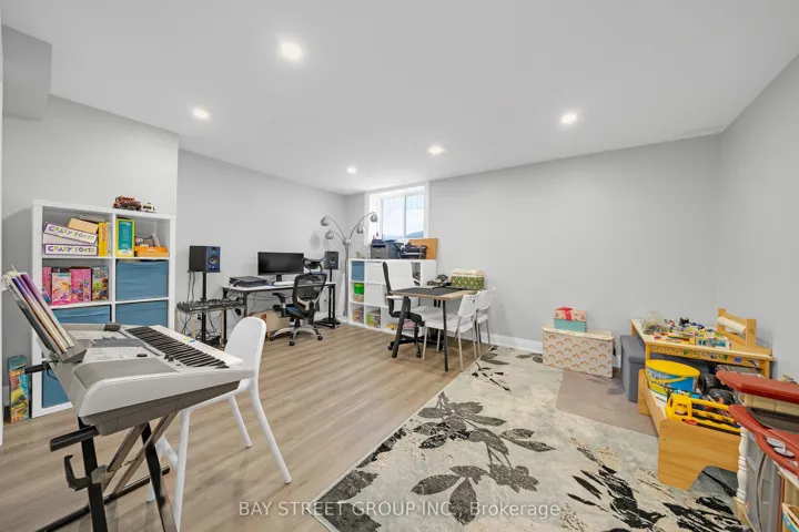 Stunning 5-year-old executive end-unit freehold townhome offering 2,317 sq ft of finished living space in a prime central Barrie location. This 3-bedroom, 4-bath home showcases a modern open-concept layout with 9-ft ceilings on the main floor and quality finishes throughout. Upgraded kitchen features quartz countertops, custom cabinetry, backsplash, stainless steel appliances, and a large centre island, seamlessly connecting to the main living area with walkout to a private interlocked backyard. Triple-pane windows, hardwood staircase, and upgraded light fixtures add to the home’s quality and comfort. Second floor offers three spacious bedrooms, two full bathrooms, and convenient upper-level laundry. Primary suite includes a walk-in closet, ensuite bath, and a custom built-in wall unit with desk and storage. Finished basement provides additional living space with a large recreation room and a 3-piece bathroom-ideal for extended family or entertaining. Located close to top-rated schools, Georgian Mall, recreation centre, parks, transit, shopping, and restaurants. Freehold with POTL fee covering snow removal and common area maintenance. Well-maintained, move-in ready, and shows like new. Exceptional opportunity in a family-friendly neighbourhood.