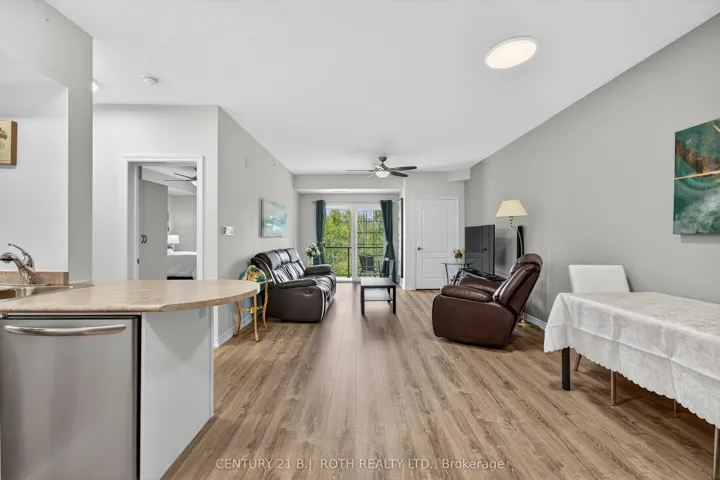Welcome to The Manhattan, Upper West Side. This well-maintained 1-bedroom, 1 bathroom condo is located in the Bloomingdale building at 40 Ferndale Dr. S. Located on the 3rd floor with a large 14 ft wide balcony overlooking the trees, this unit provides exceptional views and a serene & secluded feeling while living in the city! The open concept design, with 9ft ceilings, provides a spacious 793 Sqft of living space, allowing you the room to set up a proper living room as well as having a kitchen/dining table, in addition to the two counter height breakfast bar spaces available. The bathroom is nicely tucked away from the entertaining space and just steps from the primary bedroom. The bright bedroom has a large window and features built-in wardrobes in addition to the double closet giving you plenty of space for clothes and storage. The bathroom is upgraded with an over-sized glass shower and additional built-in cabinets for storage. This unit also offers in-suite laundry. Move-in ready for anyone looking for a turn key condo! Barbeques are permitted on the balcony; a huge bonus for condo owners! One underground parking spot with a storage locker adjoining your parking spot is located in the well-lit underground garage. Just minutes to the Barrie South GO Station, Highway 400 and located on convenient transit lines to help you get around in a variety of ways. Just minutes away from shops, restaurants and all the conveniences that Barrie has to offer.