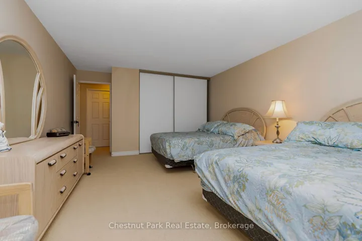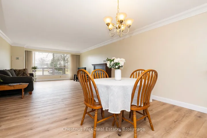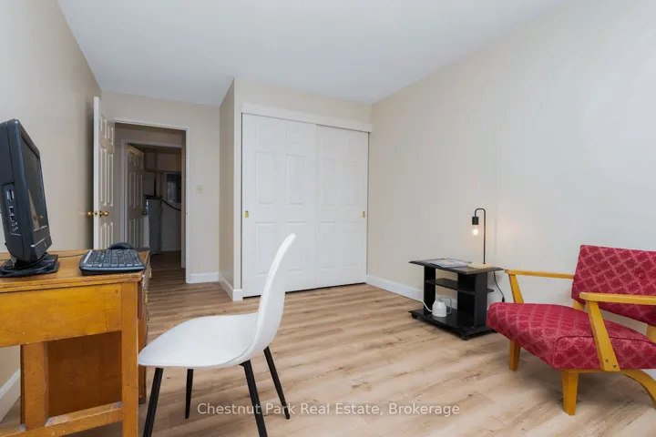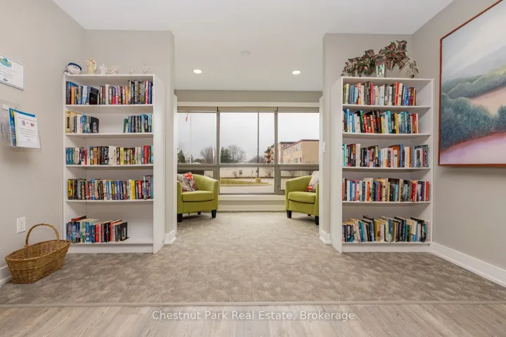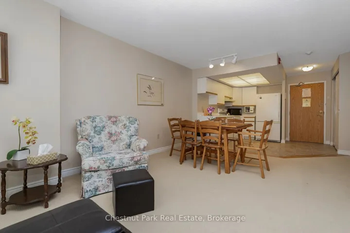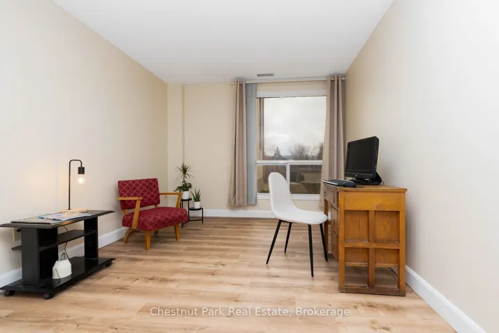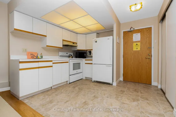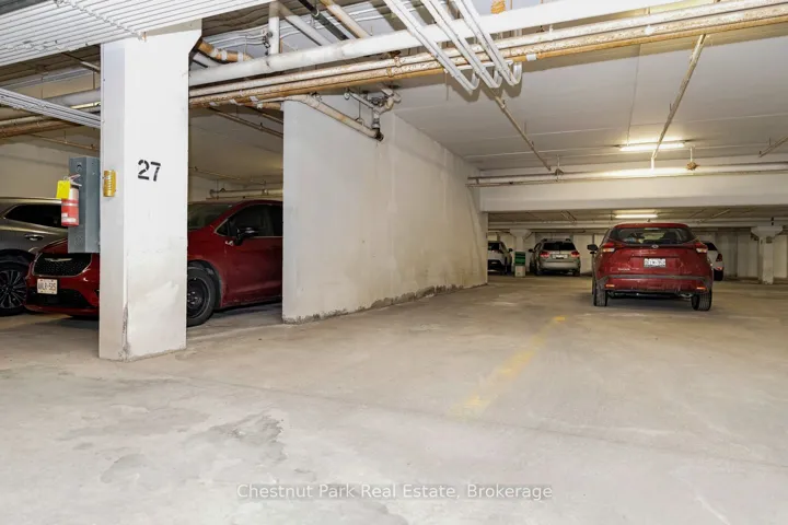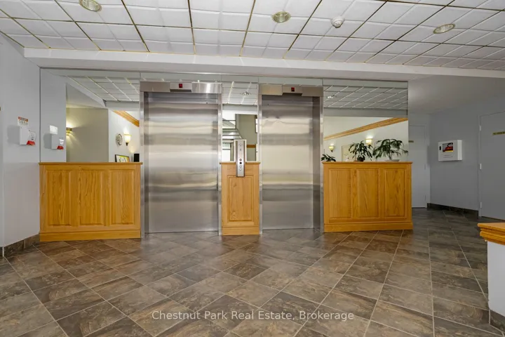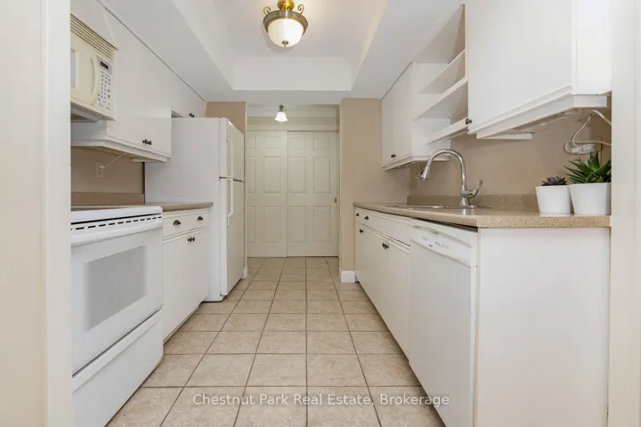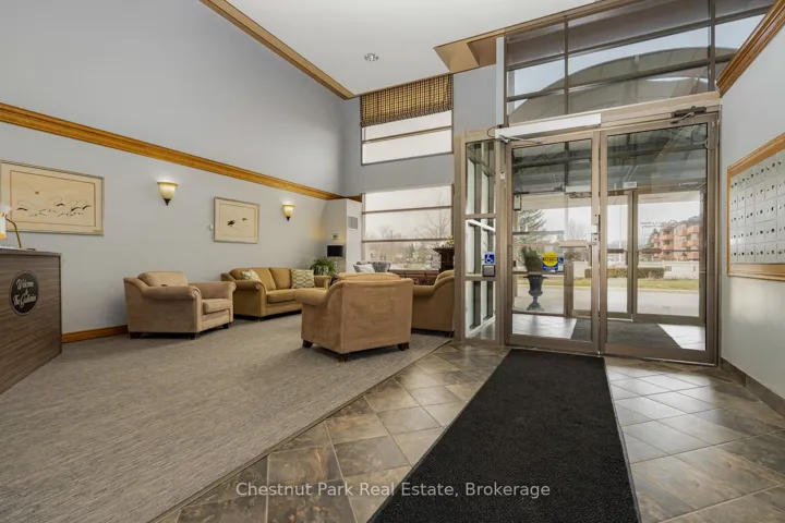 Bright and light 2 bedroom condo on the main floor in The Galleries. This west facing unit boasts ample space with over 1100 sqft; newly installed vinyl plank flooring; and freshly painted. Easy access to the secure front entrance with concierge service or keyless fob side entry to the building, no elevator is needed! Enjoy the convenience of main floor living, easy access to the sauna/fitness/games room, the social room/library, the guest suite (rental rates apply), and your locker. Your heated underground parking space #27 is conveniently located near your unit, access it using the stairs closest to your unit or the elevator just down the hall. Your condominium fees conveniently include heating, air conditioning, water and parking. The building is pet friendly for small pets. Located on the town bus route, giving you access to all in town amenities ~ downtown, shoppes, grocery stores, Georgian Bay, and a short drive to Blue Mountain Resort. This move in ready condominium offers something for everyone, comfort, convenience, and camaraderie! Enjoy the westerly sunshine and escarpment views from your new home.