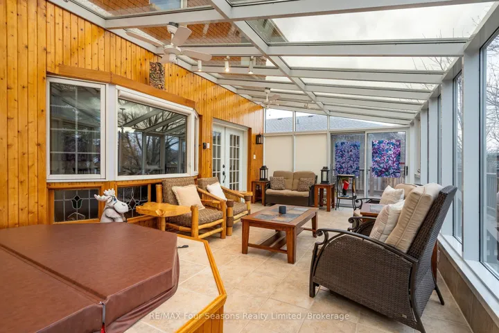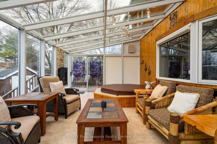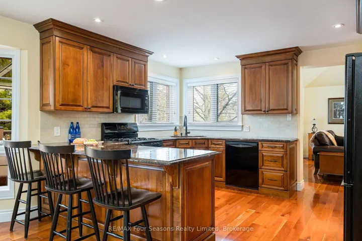 Desirable Lockhart neighbourhood! Situated on a beautifully landscaped estate lot, this custom-built family home (5 Bedrooms/4 Bathrooms) has been meticulously maintained and thoughtfully upgraded throughout. Backing onto Kinsmen Park, the property offers exceptional privacy and a serene natural setting. Enjoy year-round comfort in the stunning three-season glass solarium (23.9 X12.10 sf ), complete with an integrated hot tub and Chantico glass fireplace-an ideal space to relax or entertain. The spacious kitchen features granite countertops, a breakfast bar, and flows seamlessly into a large dining area with a custom gas fireplace, perfect for family gatherings. A bright family room with cathedral ceilings and an additional gas fireplace provides a warm and inviting atmosphere. Second level~ The primary suite serves as a private retreat, offering a soaker tub, glass shower, walk-in closet, and scenic views toward Osler Ski Resort, two generously sized bedrooms and a 4-piece bath. A versatile main floor bedroom, currently used as a den, is ideal for guests or a home office. Great space in the fully finished basement is designed for entertaining, featuring a quality pool table, spacious bedroom, 3-piece bath, and separate access to both the garage and backyard-ideal for potential in-law accommodation. Car enthusiasts will appreciate the oversized Double garage (22 X 22 ft), while the fully fenced backyard offers a private outdoor oasis with expansive decking (610 sf) a custom shed, perennial gardens, and the solarium as its centerpiece.16 Carmichael Crescent is a timeless home offering 4500+ sq ft of living space (including solarium), situated on a quiet crescent surrounded by lovely homes. Walking distance to 4 schools~ Admiral Collingwood, Notre-Dame de Huronie, Our Lady of the Bay, and CCI, as well as downtown, trails, and recreation. Southern Georgian Bay offers a fabulous lifestyle all seasons on the sparkling blue water of Georgian Bay! View the Virtual Tour