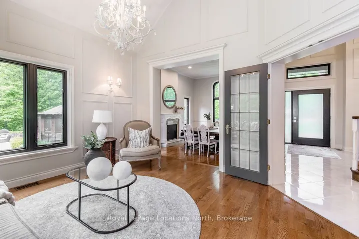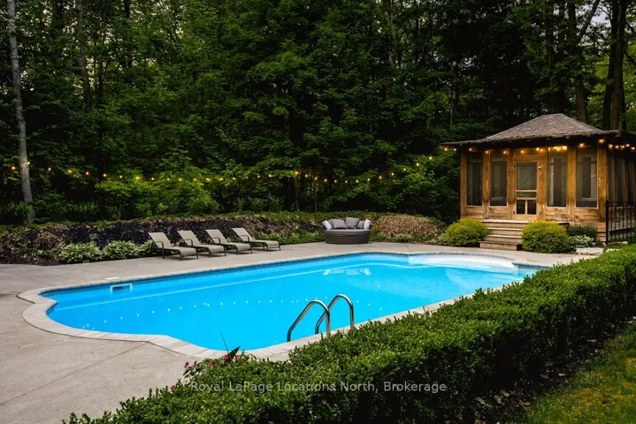 A Rare Offering in One of the Area’s Most Prestigious Estate Neighbourhoods. Tucked away in an exclusive cul-de-sac, this stunning executive home sits on a secluded 1.52-acre lot, surrounded by mature 50 oak and maple trees. A winding driveway leads to a 2-storey home with 2,733 sq ft above grade + 1,500 sq ft finished basement. A true backyard oasis + personal retreat features a 20 x 40 saltwater pool ’19, powered pool house, and an 18′ beam gazebo, all surrounded by lush landscaping and wrought iron fencing. A hot tub and tool shed complete the fully fenced yard – ideal for relaxing or entertaining. Main Floor Elegance is evident when you enter the home showcasing vaulted ceilings, a curved staircase, and elegant wainscoting. The formal dining room has 14′ ceilings, a wood-burning fireplace, and floor-to-ceiling windows. A main floor office, powder room, and open-concept kitchen with granite counters, built-ins, and a sunken family room with a wood-burning fireplace create a perfect flow. French doors lead to a large deck with scenic views. The upper level offers a refined retreat, highlighted by new hardwood flooring and a stunning hardwood staircase. The spacious primary suite offers double walk-in closets and a spa-like 5-pc ensuite with quartz, soaker tub, heated floors, and glass shower. Two more bedrooms share a newly renovated bath with quartz vanity, glass shower, and heated floors. Finished Basement ’24- Bright and versatile with 10 ceilings, pot lights, wainscoting, gym, guest bedroom, and full bath with heated floors. Upgrades: Furnace’ 25, A/C ’19, Roof ’21, Windows/Doors’22, Irrigation, Water Softener. Trail Access, minutes from golf, shops, schools, and commuter routes – this home offers the ultimate in privacy, elegance, and lifestyle. With timeless finishes, all major upgrades completed, and exceptional outdoor living, 18 Mills Circle is a rare find. Book your private showing and experience the lifestyle this exceptional estate provides.