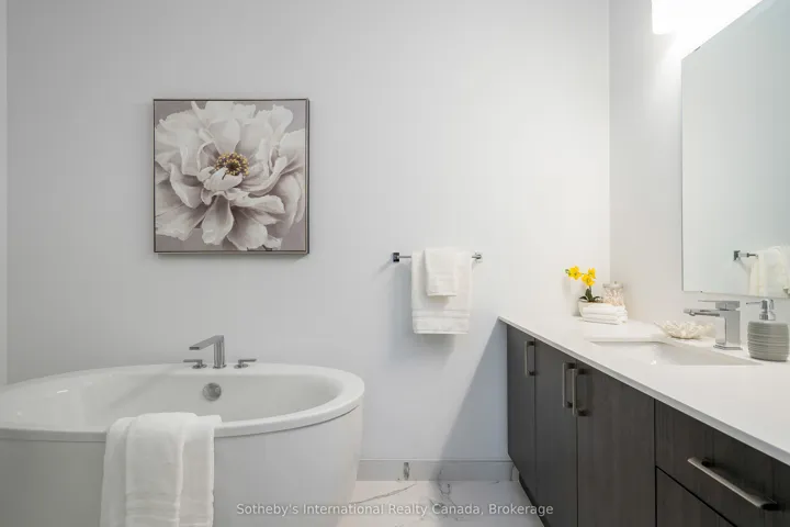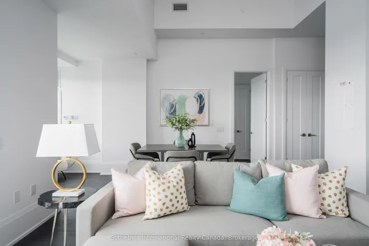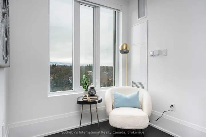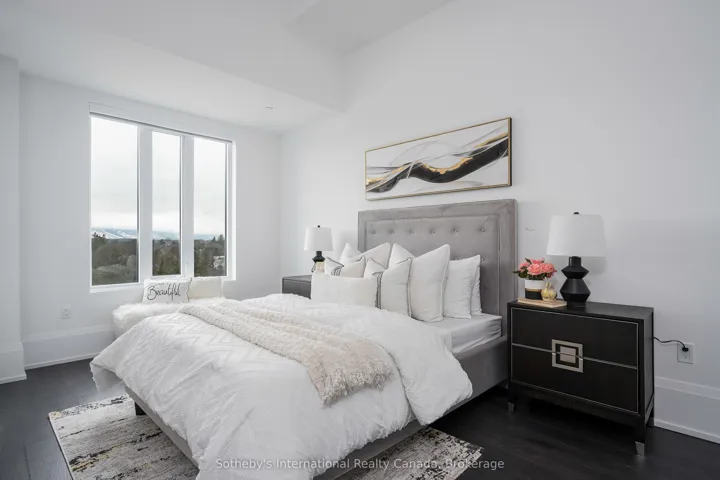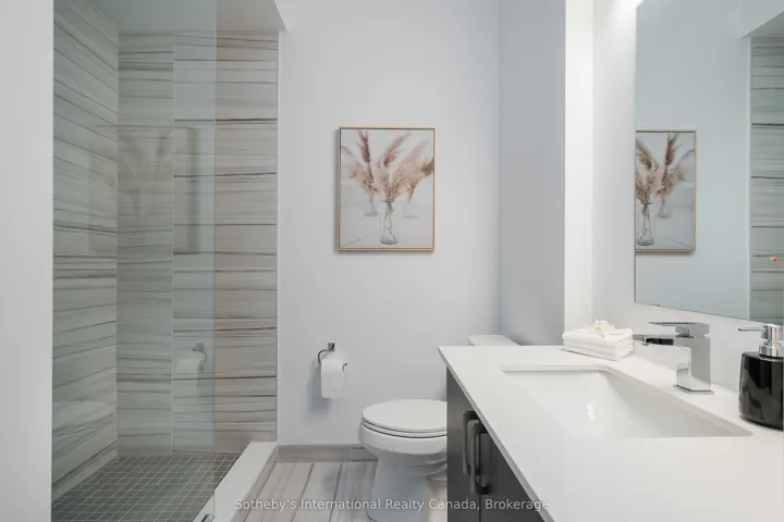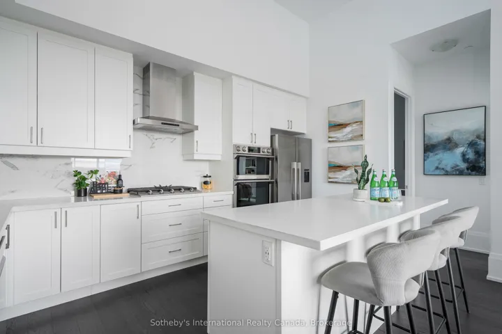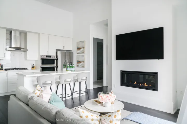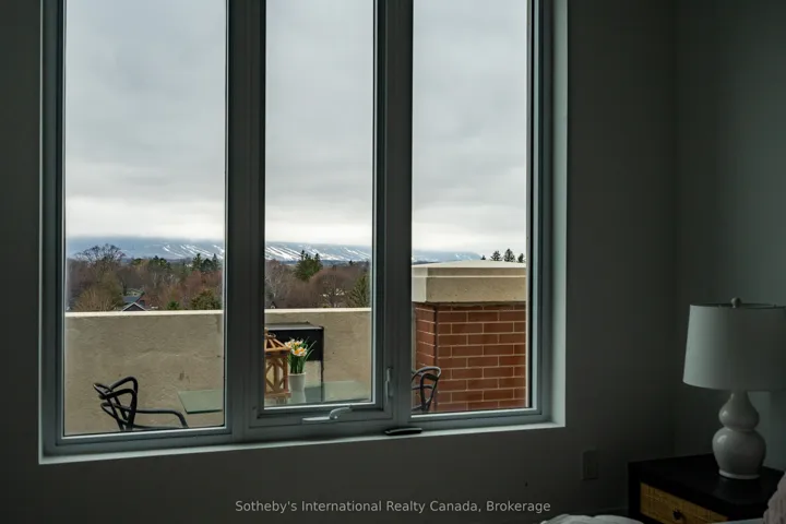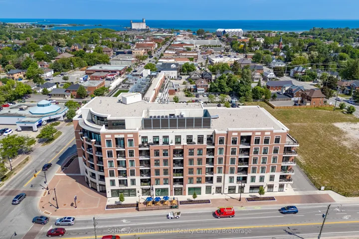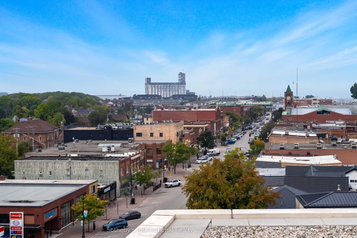 Perched atop one of downtown Collingwood’s most sought-after addresses, Penthouse 10 at The Monaco is a rare offering-an exquisitely appointed 2-bdrm, 2 full bthrm residence with a study and bonus living space, embodying luxury four-season living. Offering 1,184 sq ft of refined interior space plus a 140 sq ft private terrace, this home blends sophisticated design, comfort, and breathtaking views, enhanced by impressive 13-ft ceilings throughout. Built by Stonebrook Developments, expansive windows showcase panoramic vistas from Blue Mountain to Georgian Bay, creating a stunning backdrop throughout the day. The open-concept living area features a chef-inspired kitchen with a 7-ft island, gas cooktop, built-in oven, and upgraded refrigeration, flowing seamlessly into the dining and living space with a sleek gas fireplace-perfect for entertaining. A bright, private study off the main living area offers flexibility as a home office or lounge. Thoughtful upgrades include custom built-ins in the entry and primary suite, along with integrated electronic blinds throughout. The primary bedroom serves as a tranquil retreat, complete with a spa-like ensuite featuring a deep soaker tub and glass walk-in shower. The private terrace extends the living space outdoors with a gas BBQ line and water connection-ideal for enjoying sunsets and mountain views. Residents enjoy premium amenities including a rooftop terrace with BBQs, fireplaces, lounge areas, and stunning bay views, plus an indoor lounge with kitchen and dining space. This unit also includes two underground parking spaces and a storage locker, offering both convenience and ample space for seasonal living or full-time enjoyment. Located in the heart of downtown Collingwood, just steps to shops, restaurants, cafés, and everyday amenities-with the added convenience of a grocery store located directly beneath the building-and with easy access to trails, skiing, and waterfront activities, this is penthouse living at its finest.
