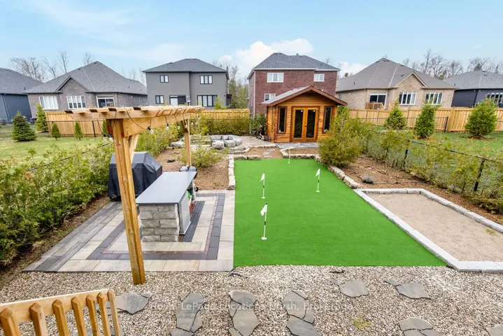 A truly one-of-a-kind designer residence where luxury, craftsmanship, and custom design come together in every detail. Professionally designed and furnished, this home offers a level of finish and cohesion rarely seen, creating a space that feels elevated and sophisticated. Designed with a refined coastal beach house aesthetic, this is a home you will never want to leave.An oversized covered front porch and oversized front entry set the tone, leading into a stunning open-concept kitchen that immediately impresses. Anchored by a large quartz island, the space is complemented by custom cabinetry with pull-out organizers, an extended pantry wall with a dedicated coffee bar, and premium appliances including a Wolf Induction cooktop and Sub-Zero fridge and freezer.The kitchen flows into a breathtaking living room defined by soaring 16ft ceilings, a dramatic floor-to-ceiling limewash fireplace, and expansive sliding doors with remote-controlled curtains that connect indoor and outdoor living. Every element has been carefully designed, from the engineered birch hardwood flooring to the custom millwork, shiplap feature walls, wainscotting, and refined lighting throughout.The main floor offers two bedrooms, including a serene primary suite with a spa-inspired 5-piece ensuite and a fully customized walk-in closet.The second bedroom features a semi-ensuite with a private water closet, ideal for guests or family.Upstairs, a stunning loft space with its own 3PC bath and two additional bedrooms provides flexible living for a home office, lounge, or family retreat.The outdoor setting is equally impressive, with a fully landscaped and fenced yard, concrete patio, custom outdoor kitchen, putting green, and fire pit, designed for both entertaining and relaxation. A well-designed mudroom with inside access to the garage and main floor laundry. The finished 2-car garage is impressive, featuring epoxy floors and immaculate custom wall organizers, all set on a beautifully landscaped lot.