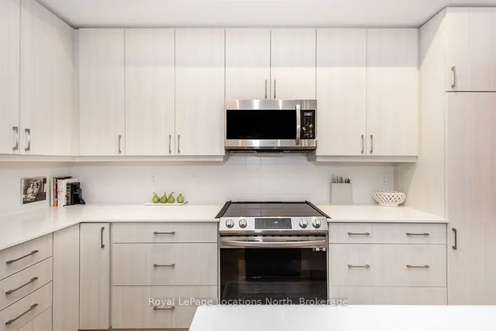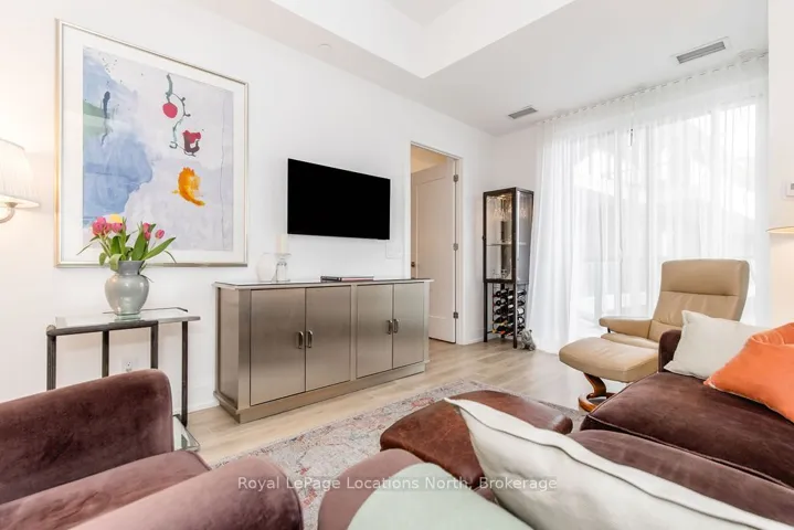 Luxury Downtown Living with EV Parking | Monaco Collingwood Live in the heart of downtown Collingwood in this beautifully upgraded 5th-floor suite at Monaco. This rare 2-bedroom, 3-bathroom layout features two private ensuites plus a guest powder room. With over $40,000 in upgrades and a premium parking space complete with an EV charger, this bright, open-concept unit is designed for modern living. Soaring 10-foot smooth ceilings, oversized windows, and neutral finishes create a light-filled, welcoming space. The kitchen is thoughtfully designed, featuring quartz countertops, extended cabinetry, a full pantry with pull-outs, two banks of pot drawers, stainless steel appliances, and a built-in microwave. Each bedroom offers its own private ensuite, while the additional powder room adds added functionality. Thoughtful details like pot lights with dimmers, laminate flooring throughout, and full-size front-loading laundry enhance the comfort of the home. Step out onto the open-air balcony to enjoy your morning coffee or unwind in the evening.Residents of Monaco enjoy exceptional amenities, including a rooftop fitness centre and terrace with BBQs, fire pit, waterfall, and dining areas. Additional features include a stylish lounge with kitchen, bicycle storage, visitor parking, Wi-Fi-enabled common areas, and a virtual concierge system with the One Valet app. Located just steps from the waterfront, restaurants, boutique shops, cafés, and everyday essentials, with Gordons Market, a Pilates studio, and Bone & Biscuit right in the building-this is true walkable lifestyle living in one of Collingwood’s most desirable locations. Includes parking with EV charger and storage locker. Available immediately.