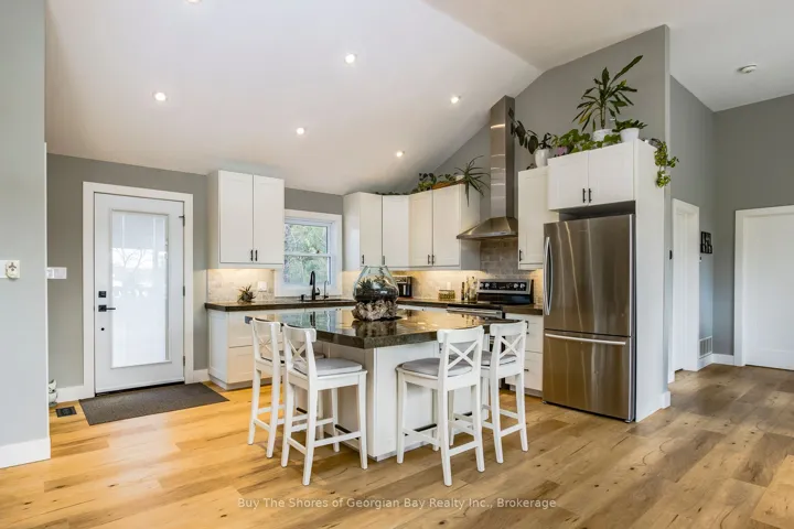 Beautiful 2019 ranch bungalow offering rare double-waterfront on Georgian Bay, with water views from both the front and back of the property. This open-concept home features a modern kitchen with all major appliances and a large walk-in pantry, flowing into bright dining, living, and sitting areas with unobstructed Bay views. The spacious primary bedroom includes a walk-in closet and 4-pc ensuite. Two additional bedrooms are generous in size, plus an office, large laundry room, 3-pc bath with walk-in shower, and a 2-pc powder room. Inside entry from the heated, insulated double garage leads to a large mudroom. A self-contained insulated and heated bunkie offers a kitchenette, 3-pc bath, sleeping area, and private deck overlooking the Bay. The property includes a hot tub, drilled well with water treatment system, new septic tank, forced-air gas (propane) heat, an AC unit for those hot summer days, and a storage shed. Enjoy a deeded beach area for swimming, or enjoy great fishing and boating, or the nearby walking trails for the outdoor enthusiasts. For those travelling out of the area, this home offers quick access to major highways (400 extension) – great for comuters. Ideal as a year-round home or cottage retreat – perfect for families, empty nesters & cottagers. This home is a must see. Book your showing today.