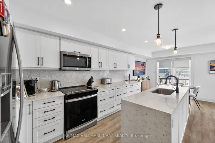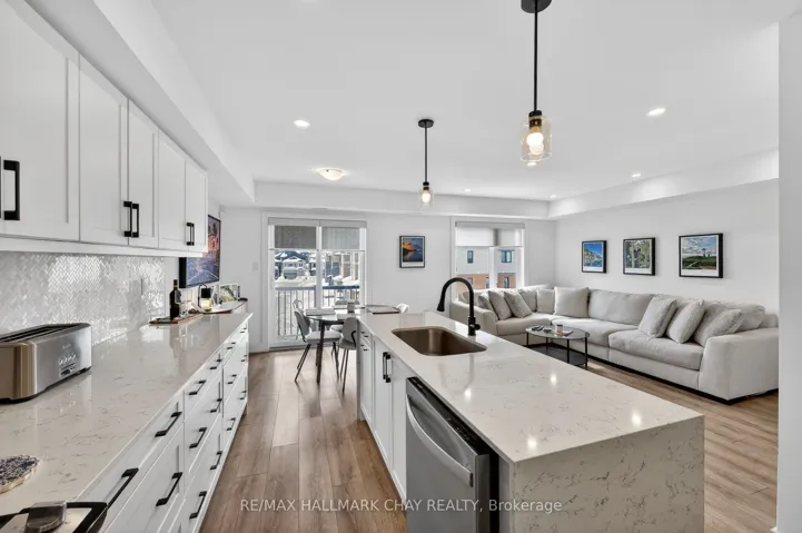 Stylishly Upgraded Condo Townhome In Barrie’s Desirable Southeast End. Step Into This Beautifully Upgraded Condo-Townhome That Seamlessly Blends Modern Design With Practical Living. No Detail Was Overlooked & No Expense Sparred Featuring An Oversized Kitchen Outfitted With White Shaker-Style Cabinetry, Soft-Close Doors, Sleek Black Hardware, Upgraded Black Faucets, Under-Cabinet Lighting, And A Premium Stainless Steel Appliance Package. The Show stopping Oversized Island Boasts Quartz Waterfall Countertops, Perfect For Entertaining. Enjoy Open-Concept Living With Pot Lights And High-End Vinyl Flooring Throughout. The Spacious Living Room Is Flooded With Natural Light From Large South-Facing Windows, Complemented By ‘Hunter-Douglas’ Automatic Blinds And A Generous Balcony Ideal For BBQs And Soaking In The Sunshine. You’ll Find Three Spacious Bedrooms, All With Upgraded Closet Doors, Black Hardware, And Continued Vinyl Flooring. The Primary Retreat Includes A Walk-In Closet And A Beautifully Finished 3-Piece Ensuite With A Glass Walk-In Shower And Quartz Vanity. The Two Additional Bedrooms Share A Modern 4-Piece Bathroom, Also With Quartz Countertops. Additional Highlights Include A 1-Car Garage With Inside Entry And An Automatic Door Opener, A Dedicated Outdoor Area With Potential For A Private Fenced Yard, And Visitor Parking For Guests. Conveniently Located Near Park Place, Friday Harbour, Beaches, Top-Rated Schools, Golf Courses, And Everyday Amenities. Also Easy Access To Go-Train & Highway 400 For Commuters Or Going To The GTA For More Entertainment.