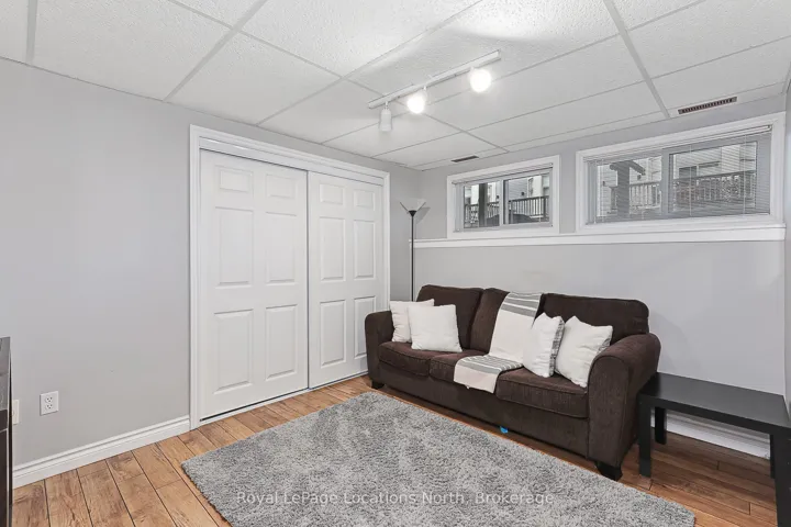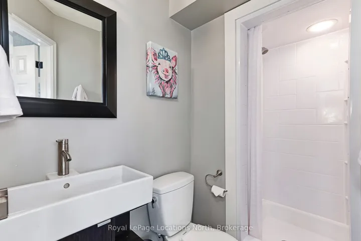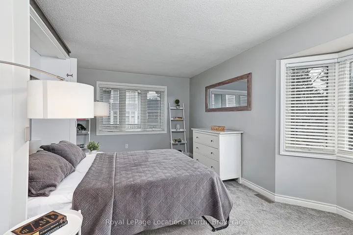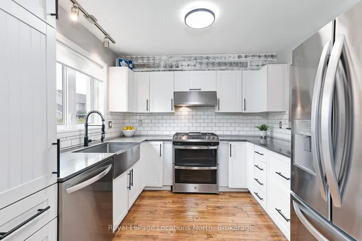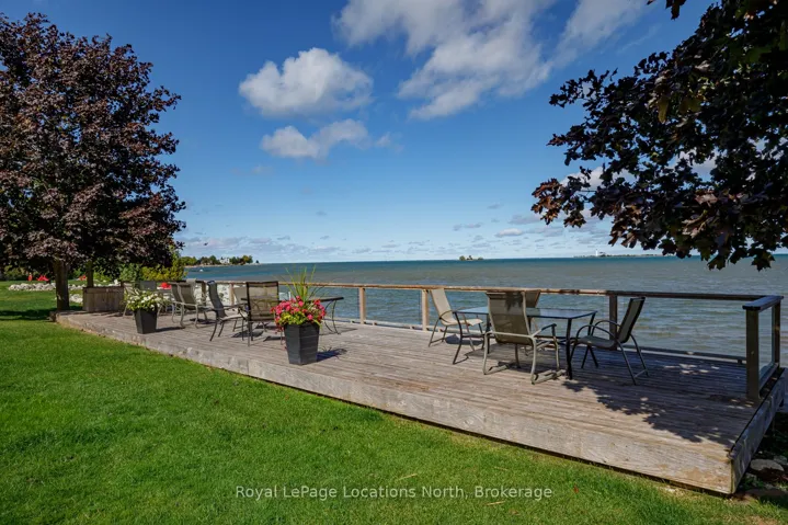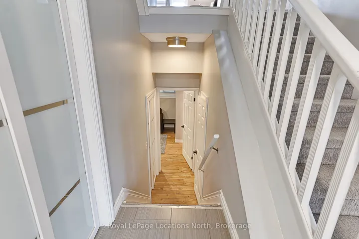 Stunning Waterfront Executive Townhome in Dockside Village, a premium waterfront community on Georgian Bay in Collingwood. This private enclave of 3-storey townhomes sits on nearly 6 acres w only 63 units, offering a maintenance-free lifestyle w 460 ft of shoreline, private beach area, & stunning Bay views. Offered turn-key, this renovated rare end-unit is one of the largest floorplans, w over 2,400 SF across 3 levels + a finished lower level. It features 4-5 bedrooms (including two primary suites-one conveniently on the main level w few stairs required) and 4 full bathrooms + a sauna. Only a handful of true 4+ bedroom units exist here. The bright open-concept main floor boasts 10+ ft vaulted ceilings, a sunken living room w wood-burning fireplace, separate dining area, & a fully renovated kitchen with quartz countertops, upgraded cabinets, stainless appliances, and farm style sink. Multiple walkouts lead to a large cedar deck w water views, covered balcony, & patio walkout. Hardwood flooring throughout much of the home. The finished lower level inc’s a versatile 5th bedroom/den (ideal for guests, gym or office), powder room w shower & sauna, laundry, storage and 9-ft ceilings w pot lights. Recent fully-paid exterior renovations inc new roofs, siding doors, garage doors, decks, balconies, driveways & landscaping. Insulated single-car garage w direct interior entry. Enjoy shared amenities: saltwater pool, tennis/pickleball courts, communal waterfront deck, watercraft launch & natural beach area.This 4-season entertainer’s dream is perfect for families & guests. Just 10 minutes to Blue Mountain skiing, golf, marinas, trails & boating. Downtown Collingwood is minutes away for dining, shopping, cafes, arts, vineyards, and breweries. Move-in ready, just bring your toothbrush! Ideal full-time home, weekend chalet, or income-generating rental w proven success. Combines modern upgrades, breathtaking views & outstanding amenities for the ultimate Collingwood/Blue lifestyle.